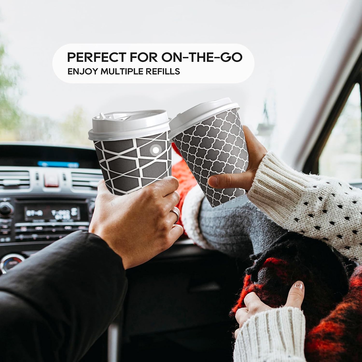 - LEAK-FREE CUPS WITH LIDS - The rolled rim creates a tight seal with our lids to prevent spills while drinking. The sipping hole accepts stirrers and straws, allowing for convenient sipping