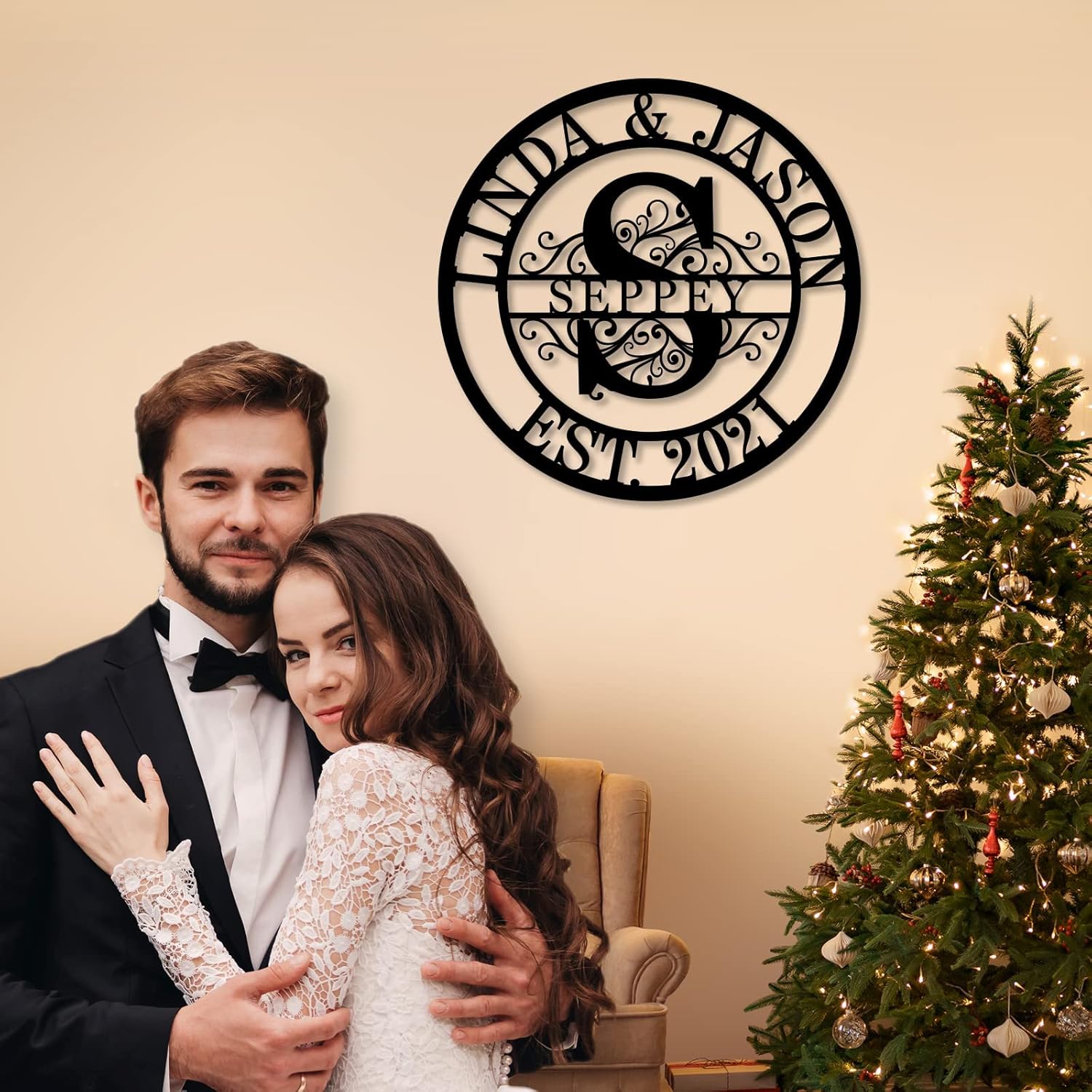 Personalized Family Name Sign Custom Last Name Metal Sign Personalized wedding gifts Monogram gifts Wall Decor Split Letter Name Metal anniversary wedding Signs