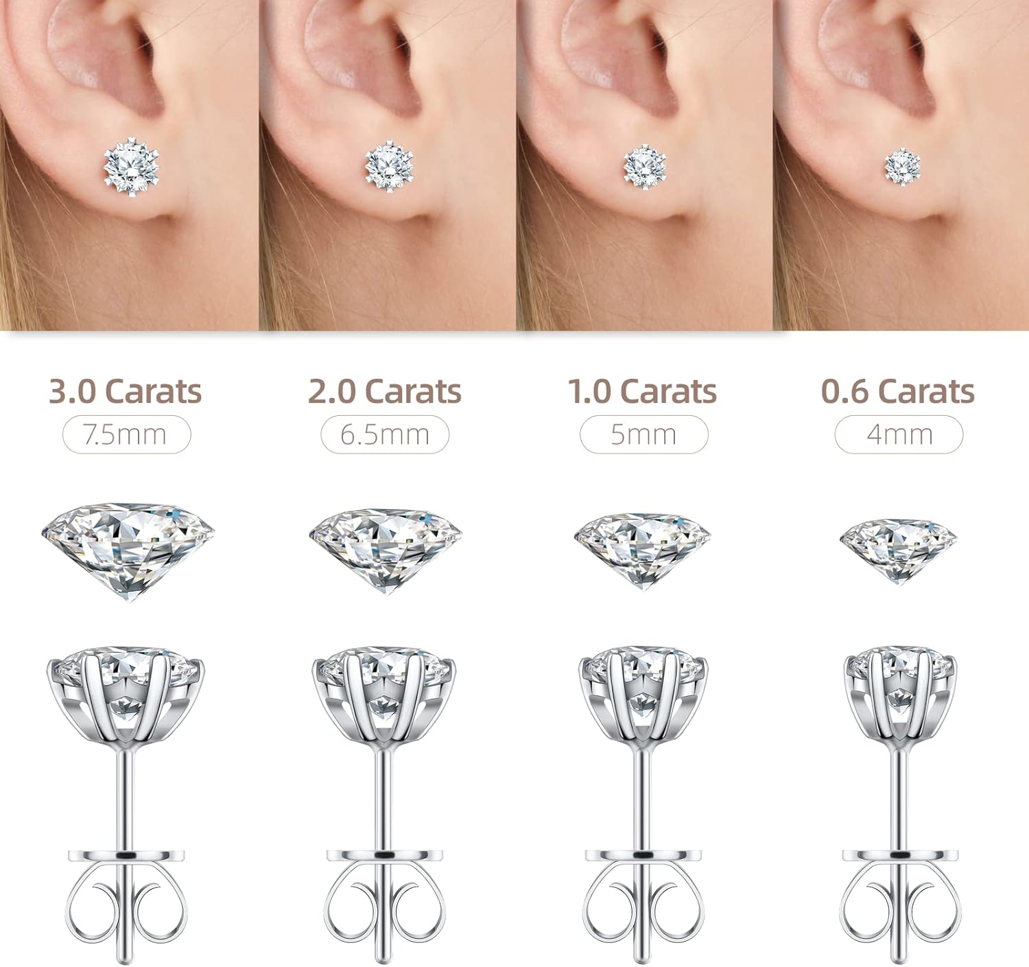Earrings for Women, Gifts for Wife Mom, 0.6 carat-3 carat Moissanite Stud Earrings, Anniversary Jewelry Present for Wife, Birthday Gifts