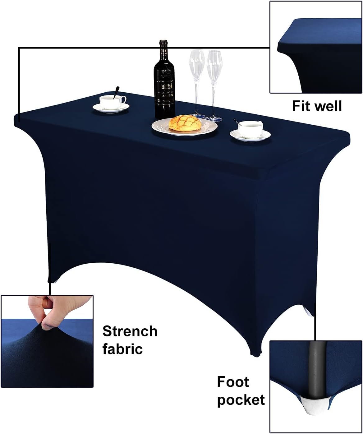 FORLIFE Spandex Table Covers,Fitted Tablecloth for Rectangular Tables, Stretch Patio Table Covers, Universal Spandex Table Cover for Wedding, Banquet, Party (4ft, Navy)