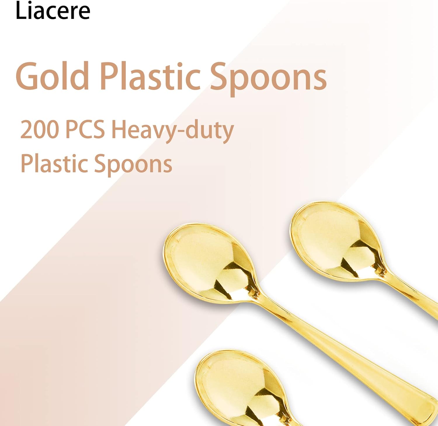 Liacere 200 Pack Gold Plastic Spoons - 6.7 inch Heavy Duty Plastic Spoons - Heavyweight Gold Disposable Spoons for Parties & Weddings & Restaurants & New Year & Fall Decor