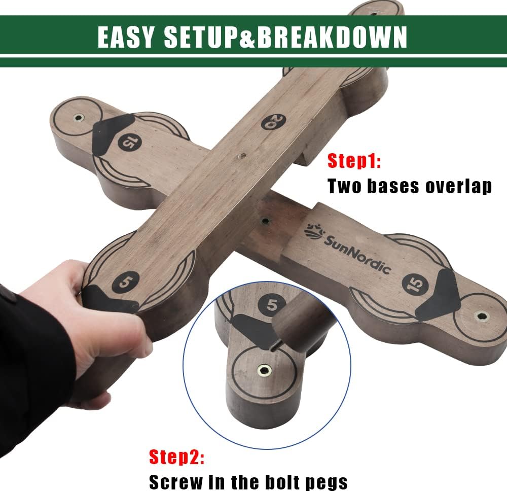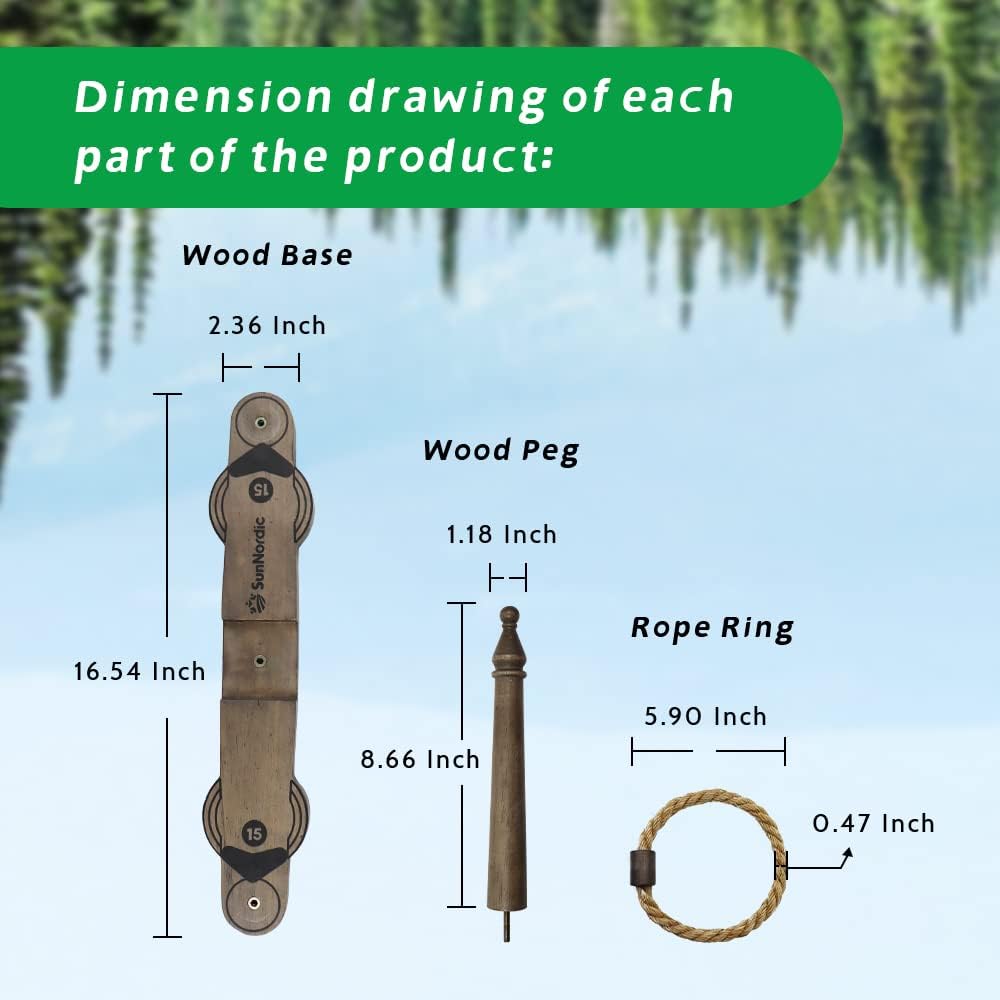 - 【RING TOSS GAME INCLUDE】The outdoor game set is made of premium pine, The round corners and edges of the throwing game are polished smooth by hand, and have additional safety. And come with 2 x sturdy bases, 5 x Lotus tree pegs, 1 x carry bag, 10 x rope rings & 10 Plastic Rings.
