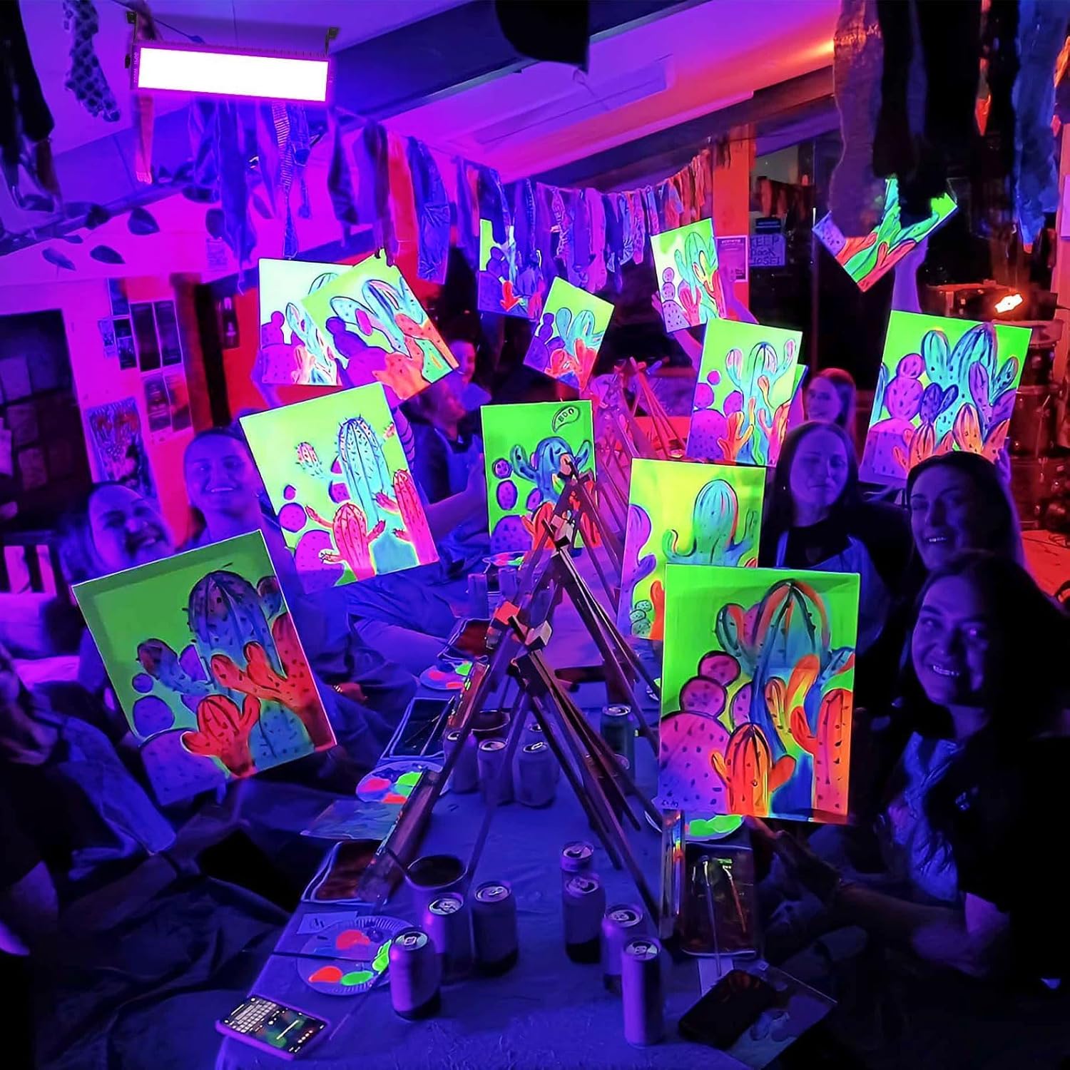 - 100W Powerful Black Light Bar: This 100W black light bar equipped with 100 premium LEDs, achieving flicker-free, it's energy-saving, It provides a strong black light effect, can light up 1600sq.ft