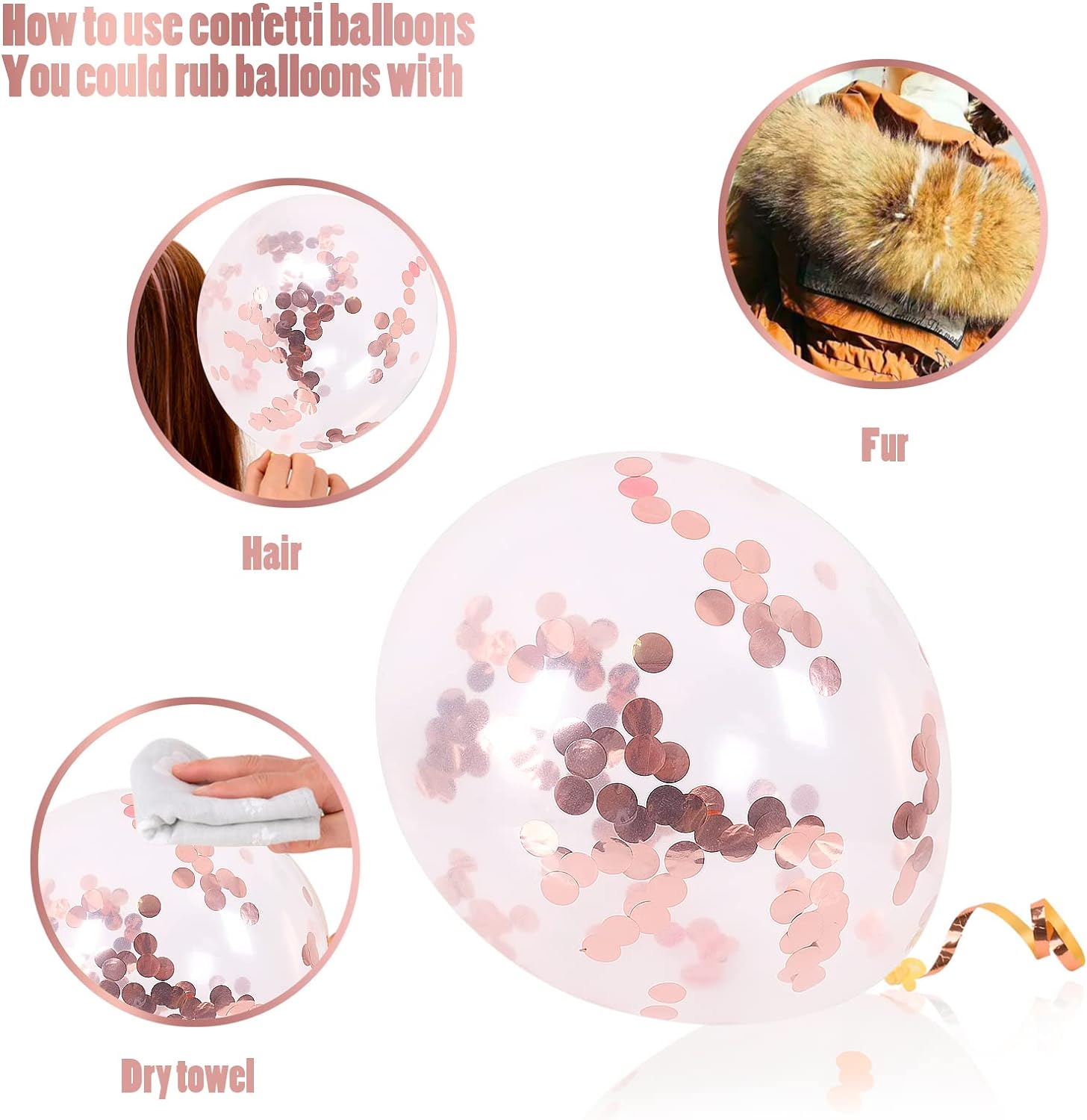 - [ Easy to Assemble ] No experience requried. Inflate balloons with helium or air pumps and glue them together to form a breathtaking arch. Three tools will help you make a gorgeous garland arch quickly. If the balloon kits include confetti balloon, rub them on your hair or carpet to help the confetti stick on the balloon!