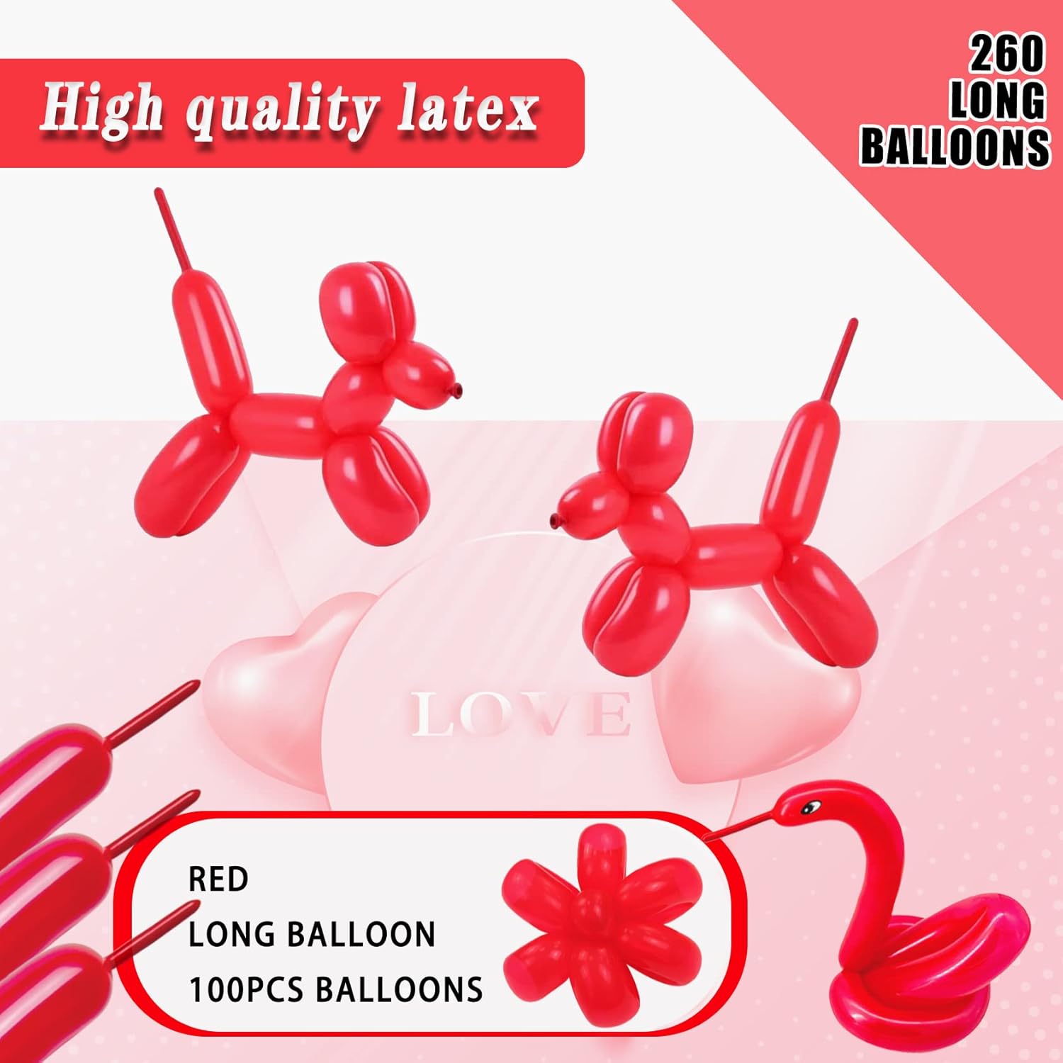 260 Long Balloons 100 Pack Red Twisting Animal Balloons Thickening Latex Modeling Long Magic Balloons for Animal Model Weddings Birthdays Festival Party Decorations