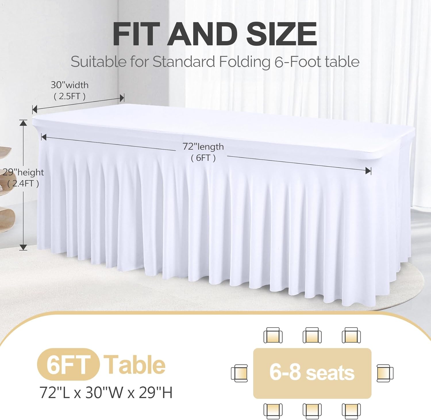 - ⭐ Spandex Table Covers for 6 Foot Tables: This ruffle table skirts fitted tablecloths for 6 foot rectangle tables (that is 72 "L X 30 "W X 29 "H)) . Made of silky smooth stretchy wrinkle resistant material, sturdy reusable and lightweight , it’s makes your table or products look elegant t and professional.
