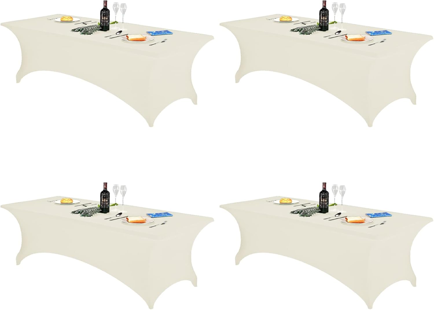 FORLIFE 4Pack Spandex Table Covers,Fitted Tablecloth for Rectangular Tables, Stretch Patio Table Covers, Universal Spandex Table Cover for Wedding, Banquet, Party (8ft, Ivory)