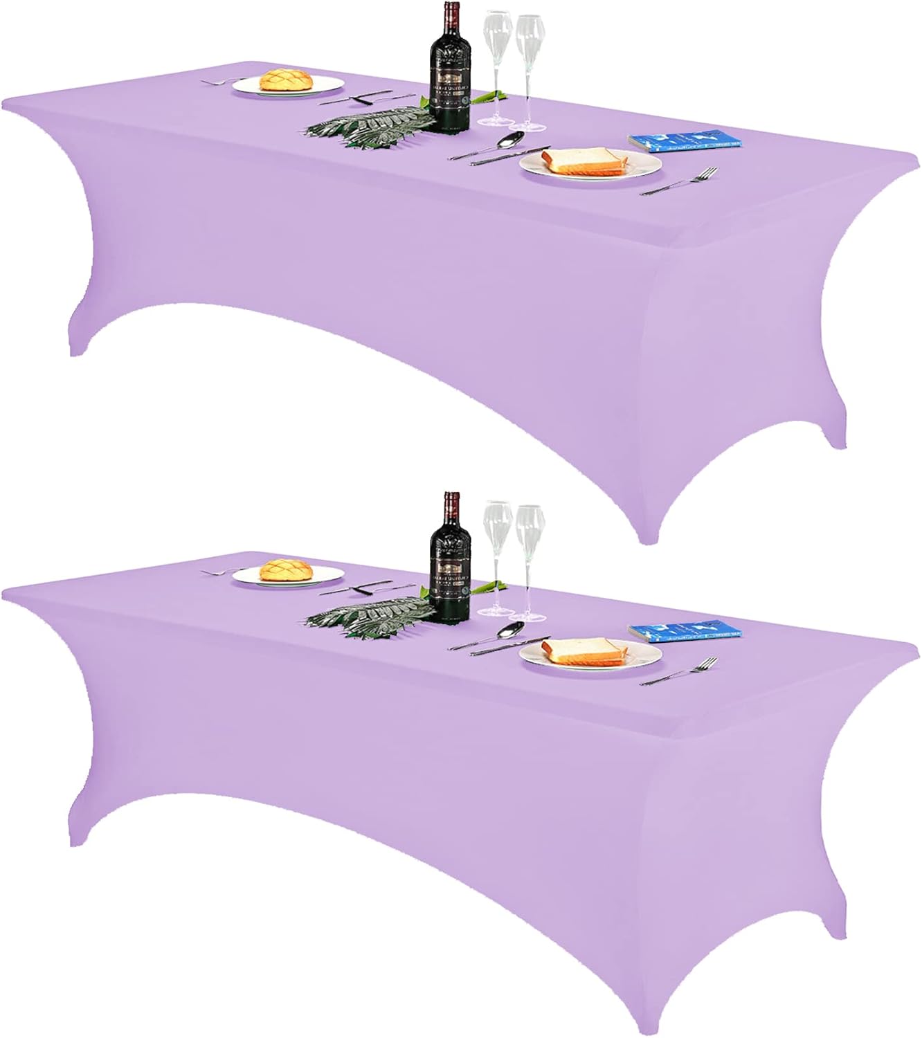 FORLIFE 2Pack Spandex Table Covers,Fitted Tablecloth for Rectangular Tables, Stretch Patio Table Covers, Universal Spandex Table Cover for Wedding, Banquet, Party (8ft, Lavender)