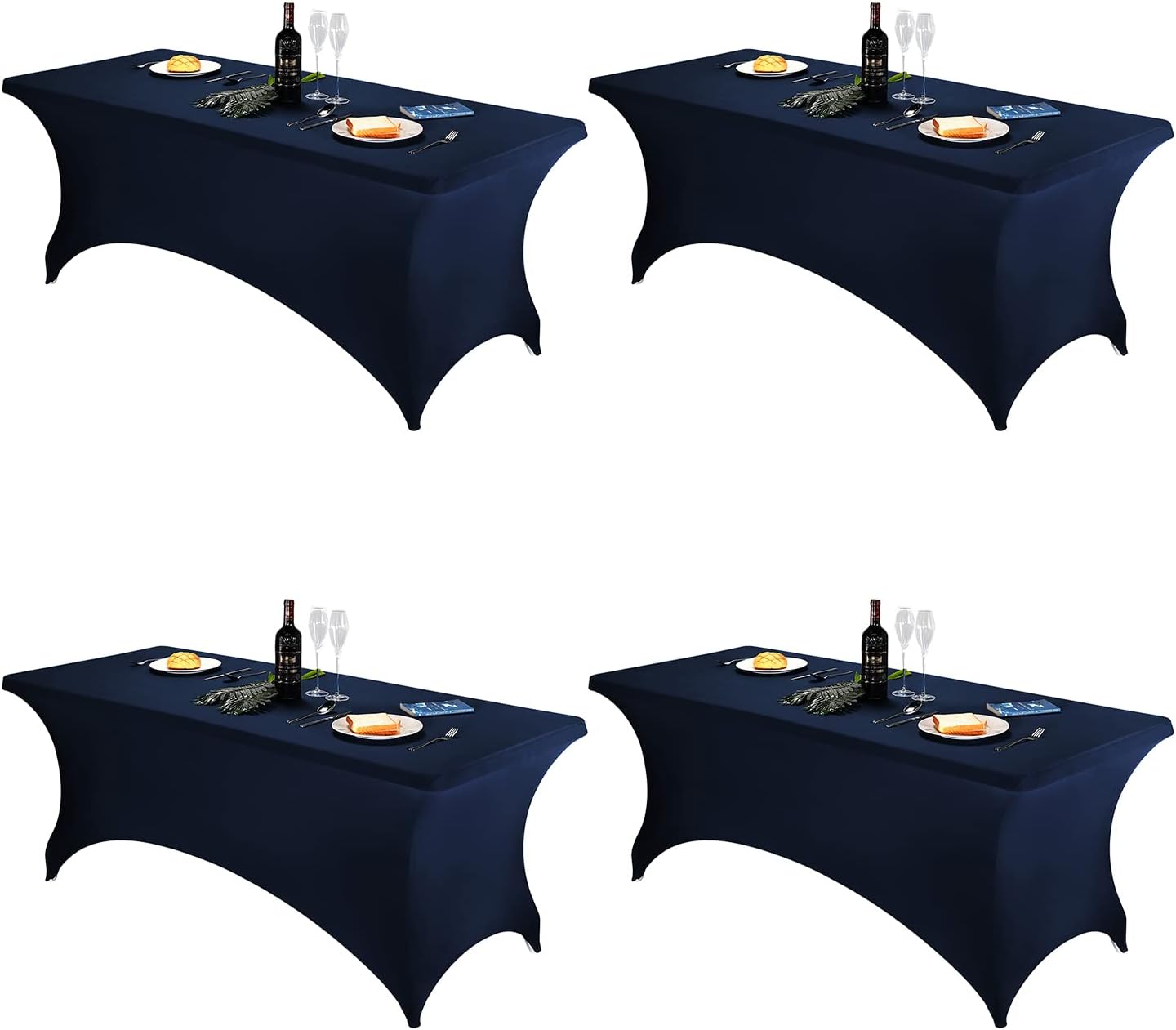 FORLIFE Spandex Table Covers - 4Pack Fitted Tablecloth, Universal 6ft Rectangular Stretch Patio Table Cover, for Wedding, Banquet, Party (Navy)