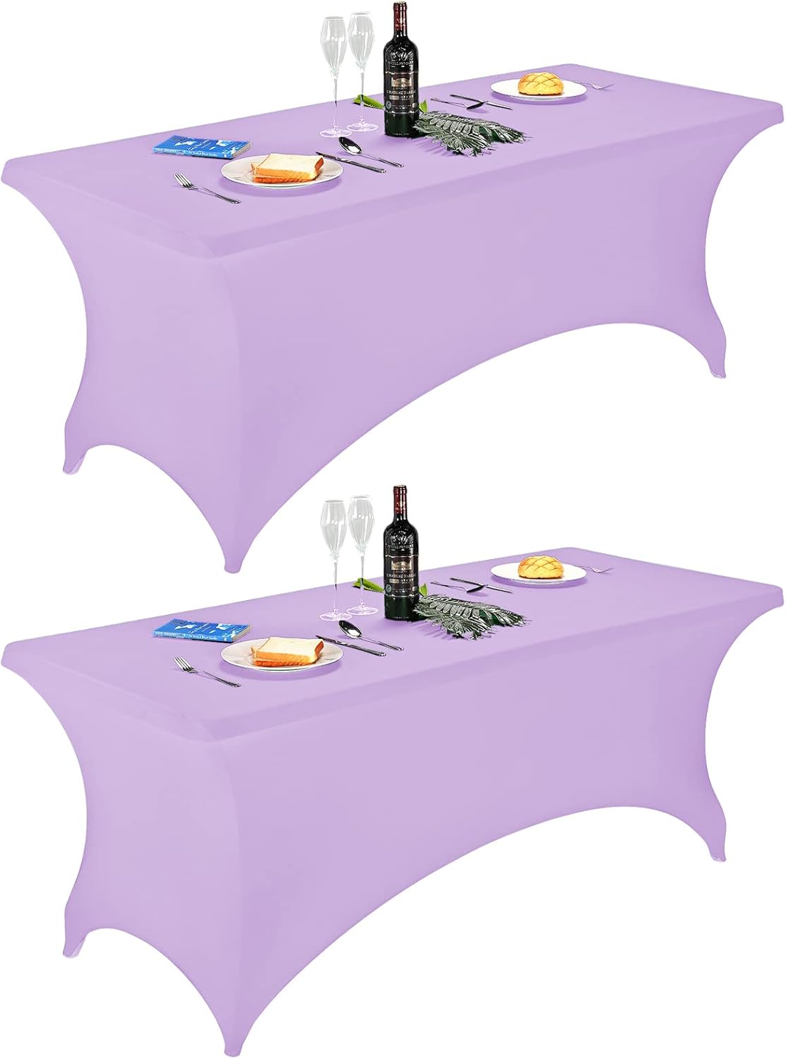 FORLIFE 2Pack Spandex Table Covers,Fitted Tablecloth for Rectangular Tables, Stretch Patio Table Covers, Universal Spandex Table Cover for Wedding, Banquet, Party (6ft, Lavender)