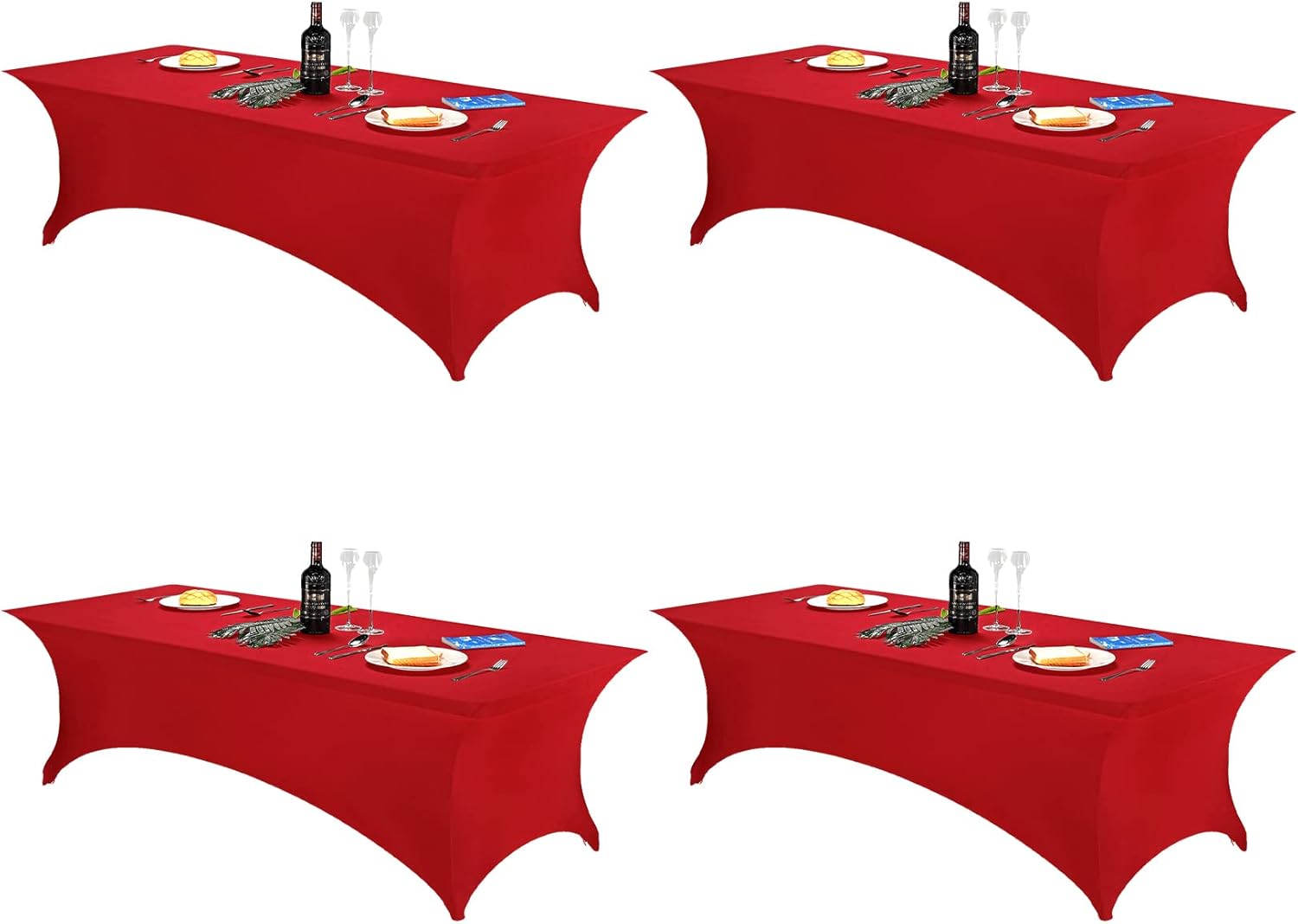 FORLIFE 4Pack Spandex Table Covers,Fitted Tablecloth for Rectangular Tables, Stretch Patio Table Covers, Universal Spandex Table Cover for Wedding, Banquet, Party (8ft, Red)