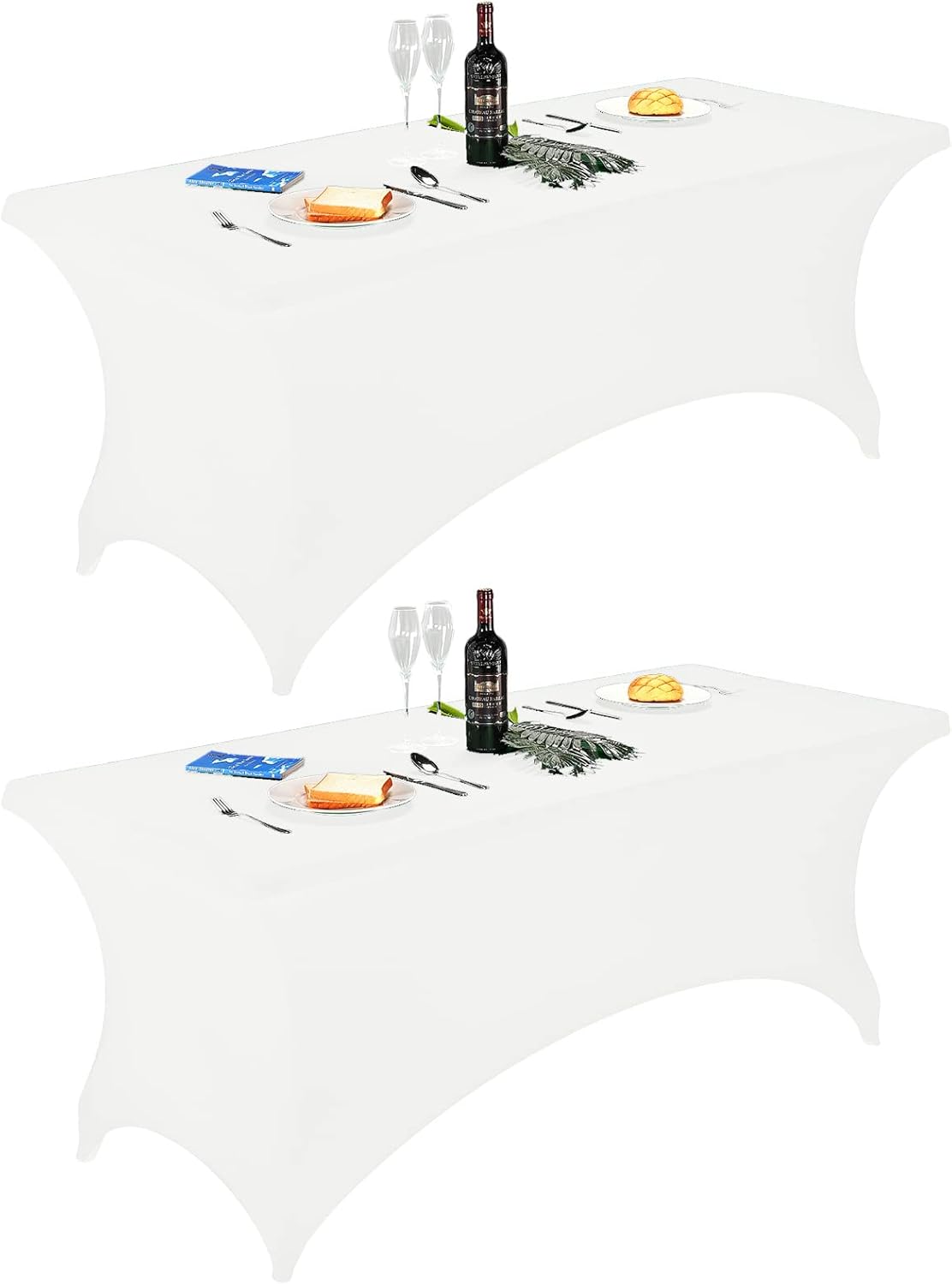 FORLIFE 2Pack Spandex Table Covers,Fitted Tablecloth for Rectangular Tables, Stretch Patio Table Covers, Universal Spandex Table Cover for Wedding, Banquet, Party (6ft, White)