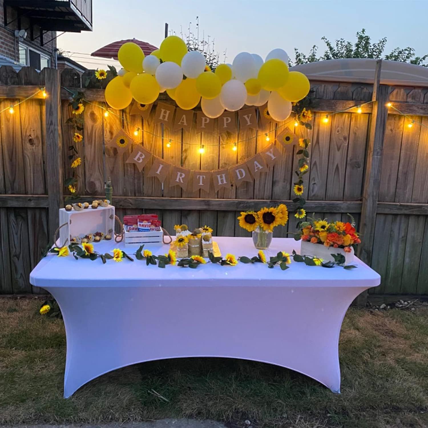 - Stretchy Fabric & Foot Pocket Design makes the table cover fit well with the table and stay in place. It's easy to install and absolutely a time-saving choice for decorating parties.