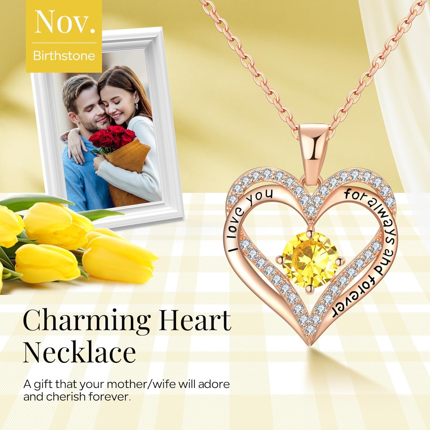 - Heart Shape Design: The necklace is engraved with "'I love you for always and forever'", which expresses your love and will surely warm her heart. You can show your love to your wife, girlfriend, mother, daughter and other women. This double heart necklace is a meaningful gift for her
