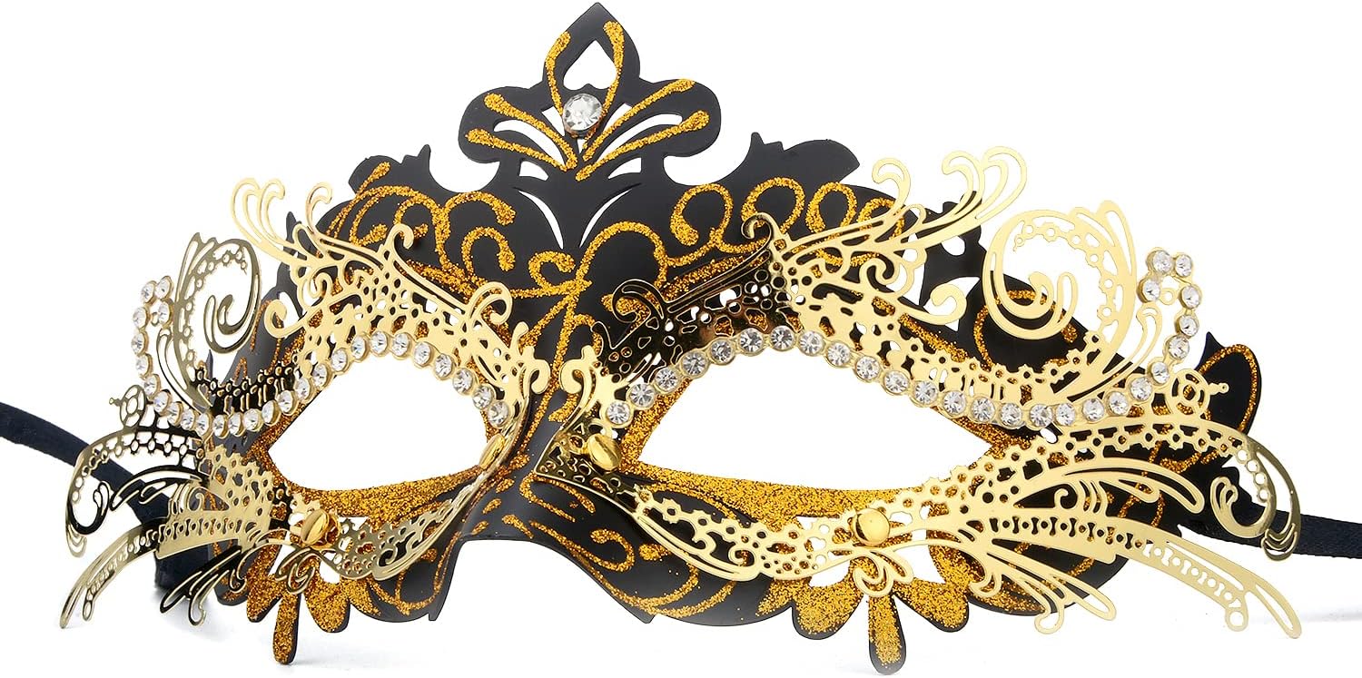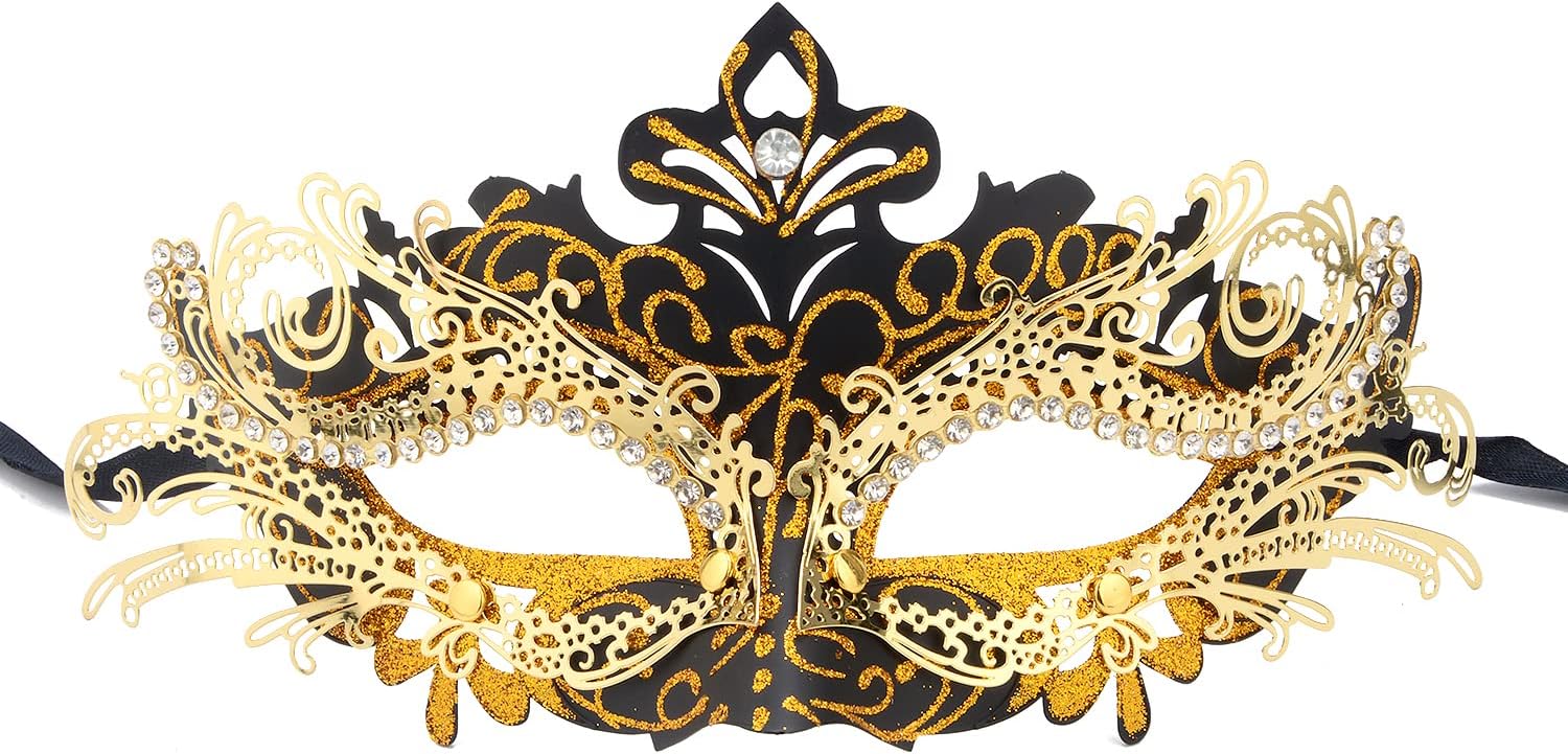 - MATERIAL: This masquerade mask made of ABS base inlaid metal and sparkling rhinestones