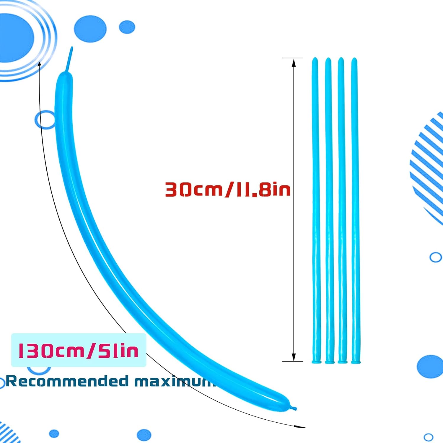 - BALLOON ANIMAL BALLOONS: The length of the twisty balloon is 12.5 inches, and it can be inflated to 47-53 inches. It can be easily inflated with balloon pump or an electric pump.