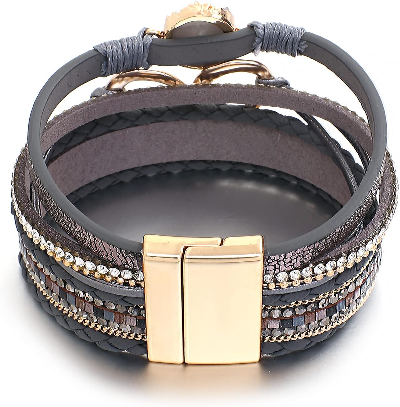 Leather Wrap Bracelet for Women Beaded Cuff Bracelet with Heart-shape Decor Bohemian Crystal Bracelet Jewelry with Clasp Bangle Bracelet for Women Girls Birthday Holiday Gift