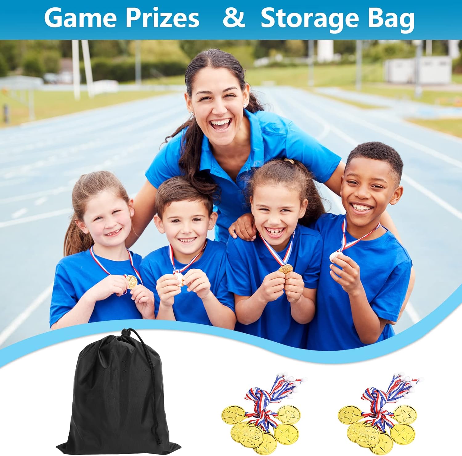 - Medals & Storage Bag - 12 medals used to reward the kids who win the games. Comes with a storage bag and adjustable center flag, make it easy to use and easy to carry