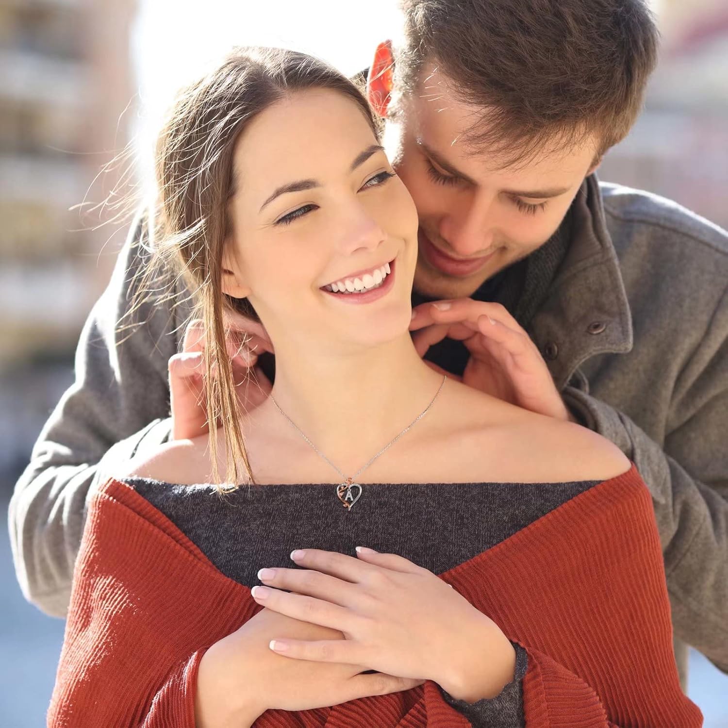 Iefil Christmas Gifts for Women Wife - 925 Sterling Silver Rose Heart Initial Necklace, Anniversary Birthday Gifts for Women, Jewelry Gift for Her Wife Girlfriend Mom Daughter