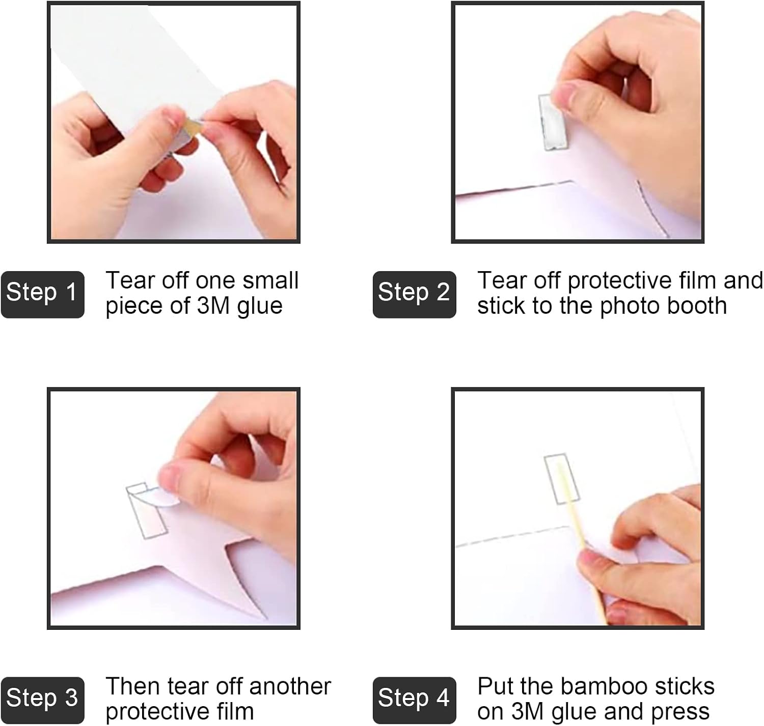 - Quick and Easy Assemble Required: Wood sticks and adhesive pads come with the props to make for a quick and easy assemble. Just attach the printed DIY photo booth props to the wooden dowels. They also works well with hot glue or tape for an extra secure hold.