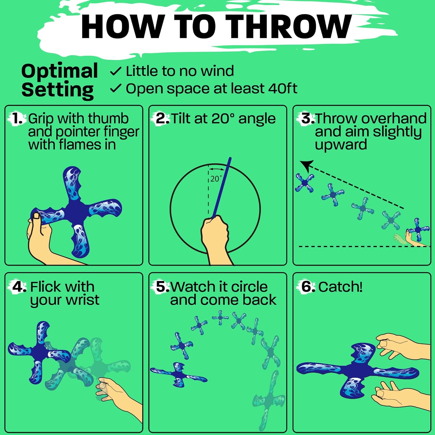 - ๐๐ฎ๐๐ ๐ง๐ผ ๐๐ฒ๐ฎ๐ฟ๐ป: Embrace the simple joys of throwing a boomerang and having it come back to you with ease. With our beginner-friendly easy to throw design crafted from durable EVA foam. It's stable flight and comfortable grip make throwing and catching a breeze, ensuring a quick and enjoyable learning experience for kids age 6 and up.