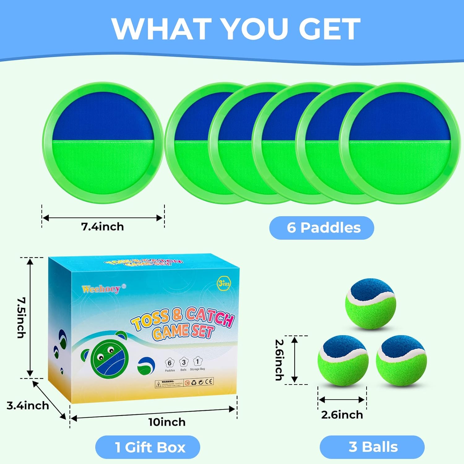 Kids Toys - Outdoor Games for Kids, Toss and Catch Ball Set with 6 Paddles 3 Balls, Gifts for 3 4 5 6 7 8+ Year Old Boys Girls Christmas Birthday, Perfect for Backyard, Parties, Camping, Family