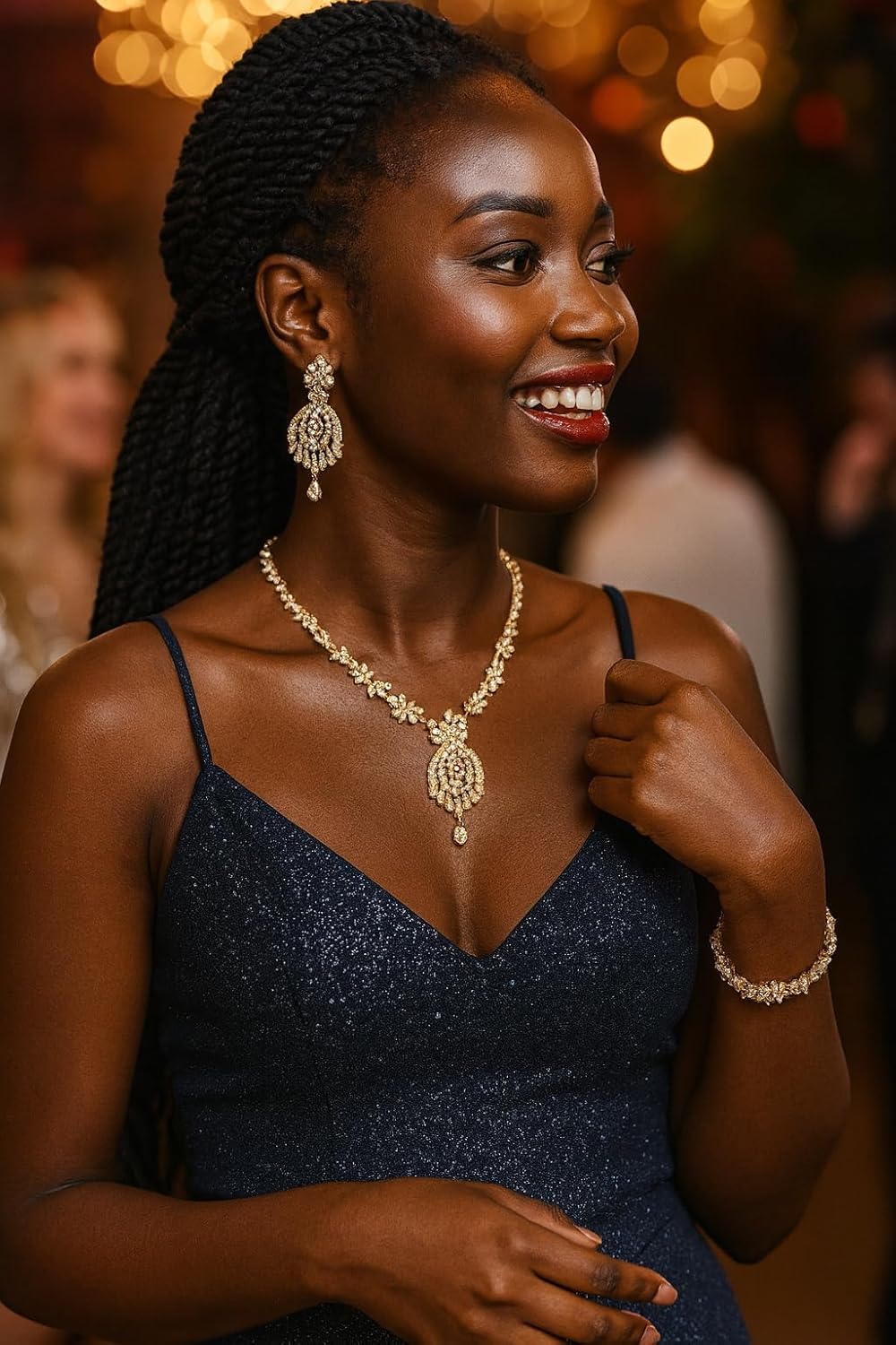 - MATERIAL & TECHNIQUE: Stainless steel Ear Posts. Special Long lasting Plating with Lacquer finish. Made of long lasting alloy metal, good quality white Austrian crystals rhinestones. EXTRA LONG EARRINGS: Length 2.00 Inches. SPECIFICATIONS: Necklace Length: 15.50 Inches. (Extendable/Adjustable With Extra Links/Chain Up To 19.25 Inches. Bracelet Length: 7.50 Inches. Earrings Weight (Single) 9 Gms. Earrings Length 2.00 Inches. Earrings Width 1 Inch. Extra stones and Ear push.