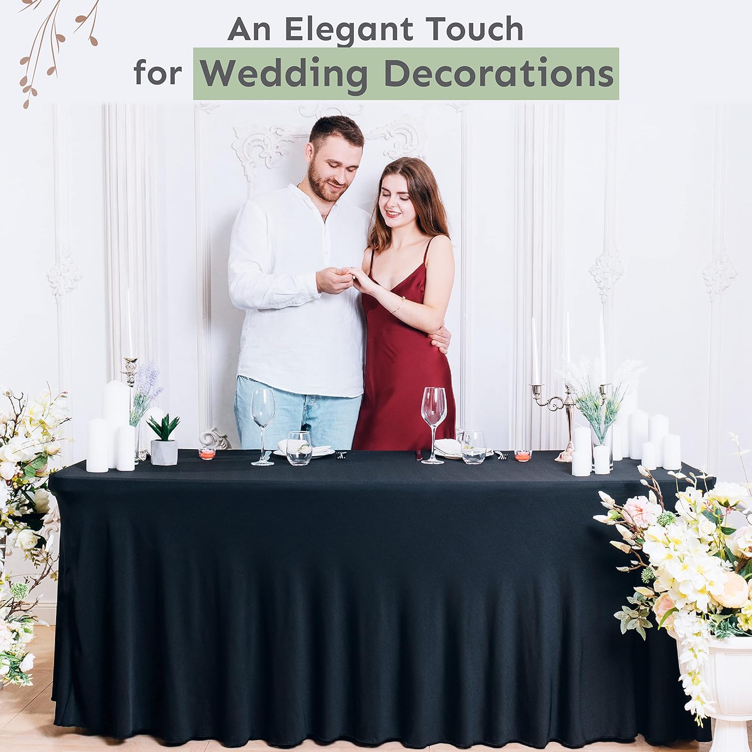 Table Skirt for Rectangular Tables 8ft - Spandex TableCovers for Standard 8 Foot Table - One Piece Fitted Elastic Tablecloth - Wrinkle Resistant Ruffles Design for Weddings, Party, Events (Black)