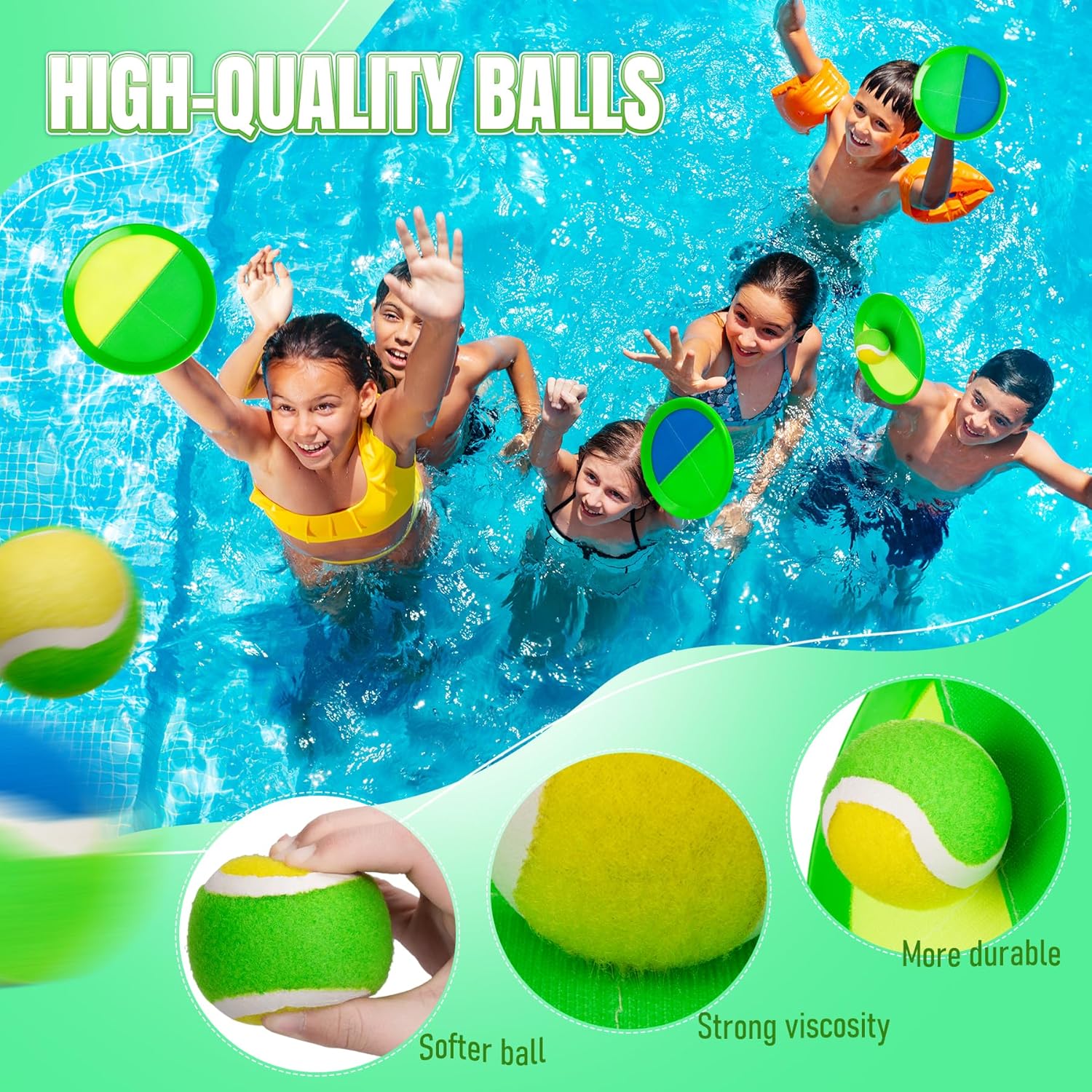 • 【Improves Kids' Fitness】Ideal for children ages 4-8 and 8-12,this pool toys for kids set is perfect for backyard parties and beach days. The sturdy materials ensure durability while promoting hand-eye coordination. Play BALL CATCH games that challenge and entertain both toddlers and teens alike.This tossel and catch ball set brings endless fun to your sand and water activities. This children's beach toy is compact and portable, making it ideal for traveling vacations.