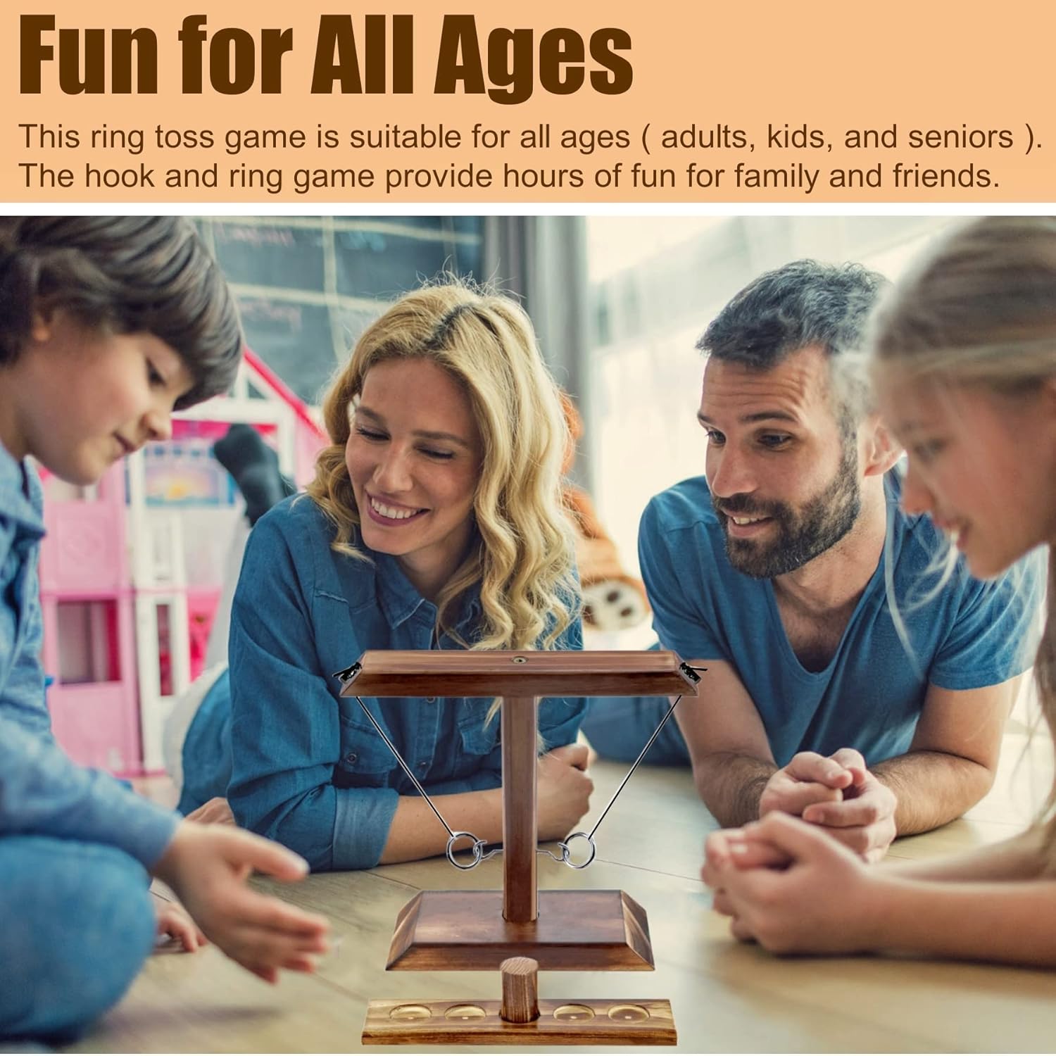 - 【How to play the hook and ring game】:Place wooden cylinder in the center circle,both players take their ring, pull back, and let go trying to hook the ring before their opponent! Each time you land the hook, move the wooden cup 1 space towards your opponent. Player wins when the wooden cup moves off the end of the ladder.Or create your own variation,make more fun in the game night.