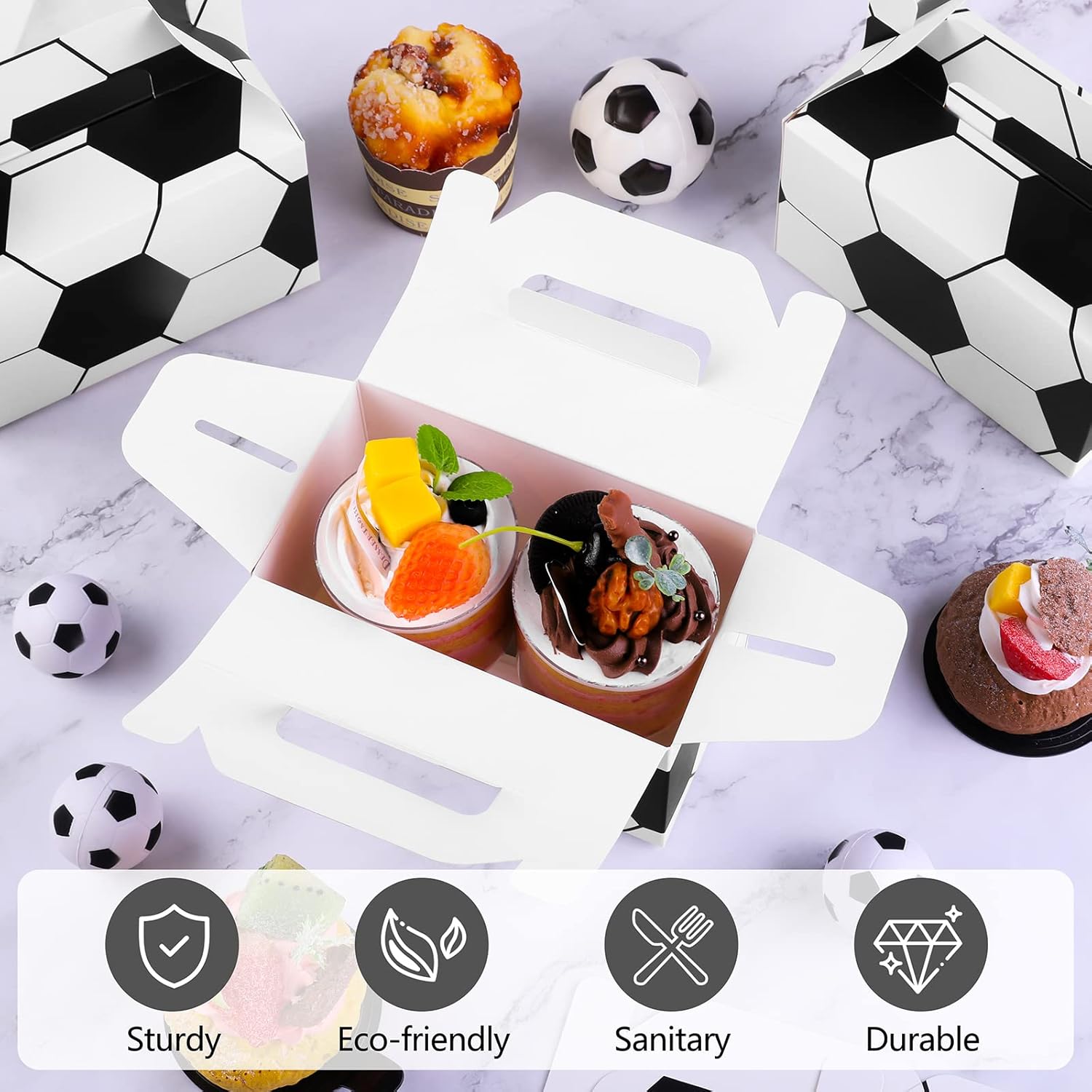 - High-quality material: these soccer gable boxes are made of food-grade thick paper material, durable and strong, environmentally friendly and sanitary, not easy to deform