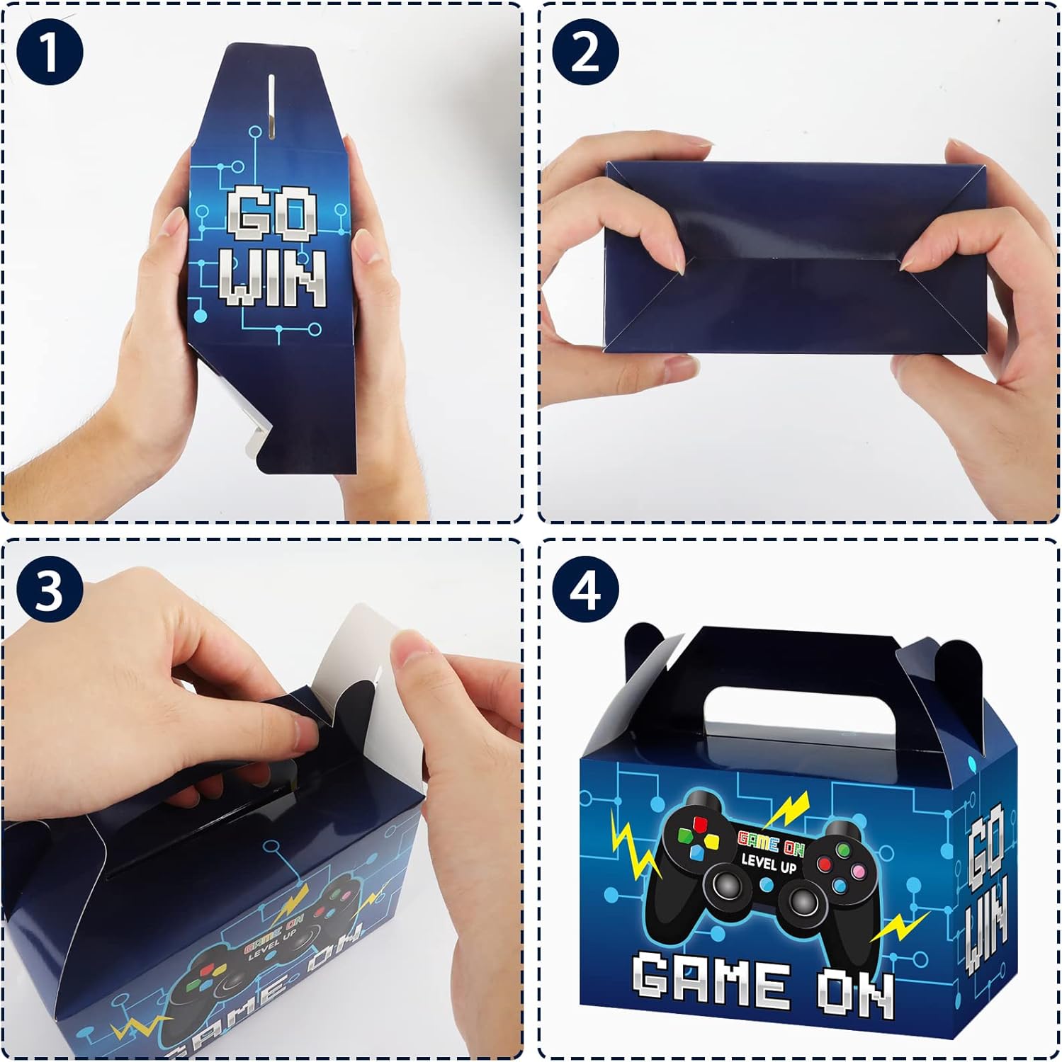 - Package contains: you will receive 24 game party gift boxes in 4 designs, with bright blue game controllers, game terms, Game on", "Game over" written on the front of the package, perfect for gifting a party gifts and small gifts