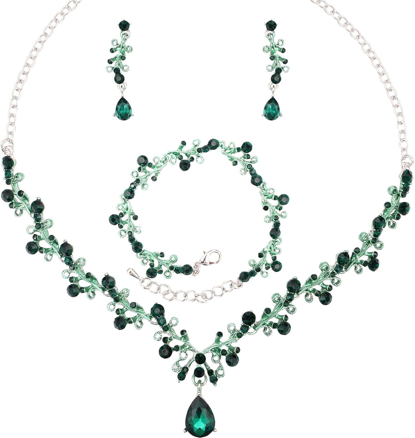 • Specification: Earrings + Necklace + Bracelet, 3 types Jewelry of wedding,Statement Necklace Size:16.5-19 in; Dangle Earrings length:2.2 in; Bracelet length:6-8 in; Lightweight and Comfortable to Wear. Perfect Jewelry Set for Women Ladies