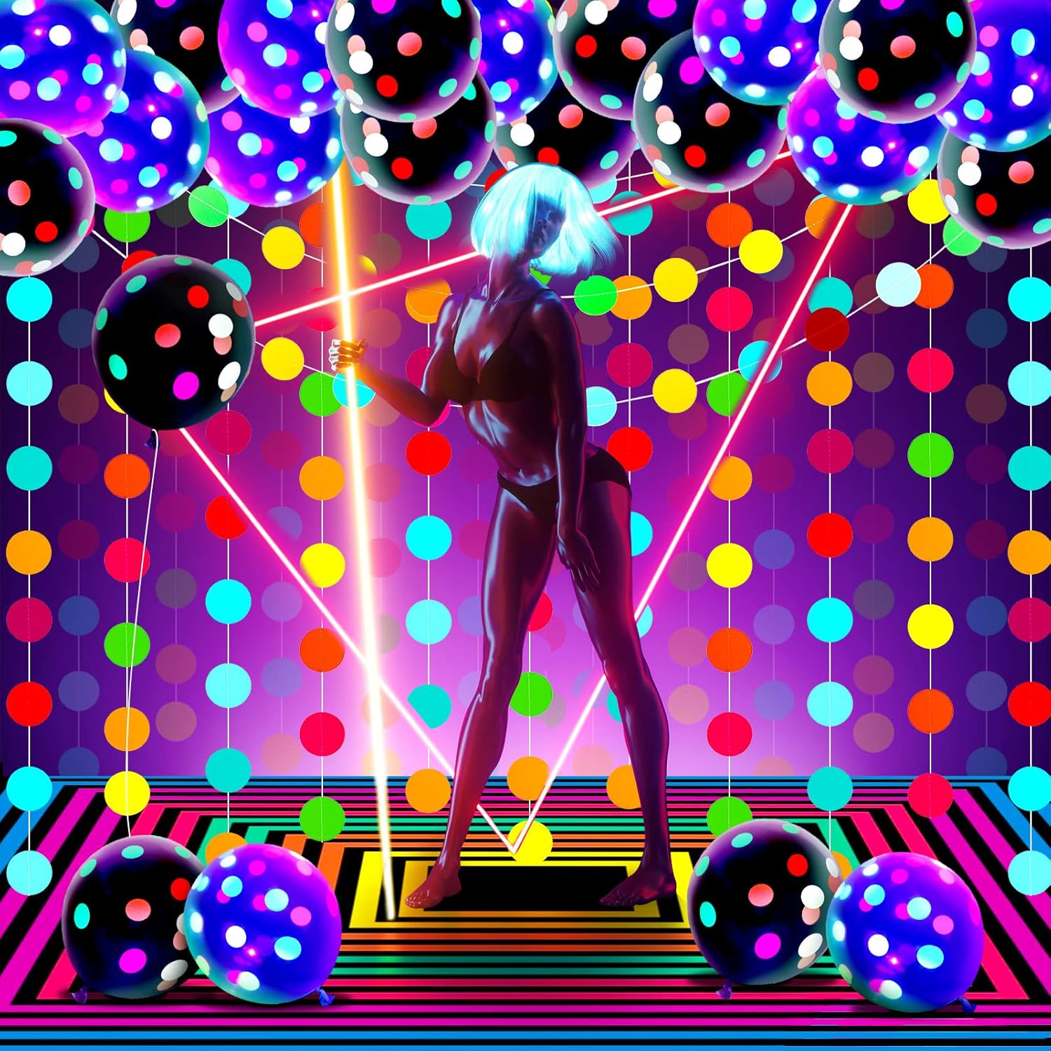 32 Pcs Glow in The Dark Party Supplies Christmas Neon Party Favors with 25 Fluorescent Balloon 6 Rolls 98.4 ft UV Blacklight Luminous Tape 14.4 ft Neon Streamer Garland for Adults(Bright Big Dot)