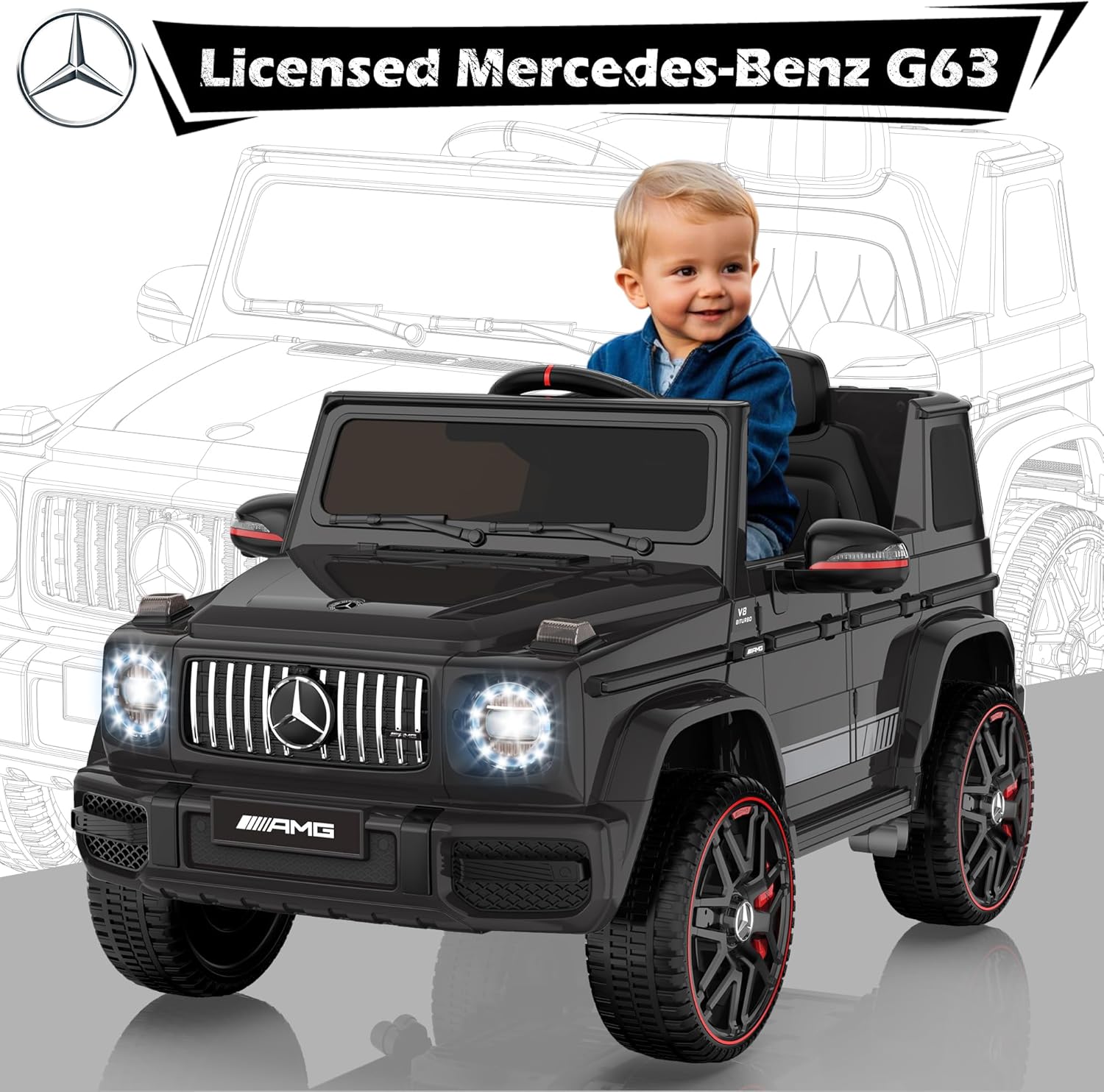 - [Licensed Mercedes Benz G63] Featuring the iconic grille for which Mercedes Benz is known, this g wagon electric car for kids is perfect for little ones who want to cruise indoors or outdoors in style. Driving in a luxurious and powerful car is now a joy you can pass on to your child with a miniature version of your favorite ride