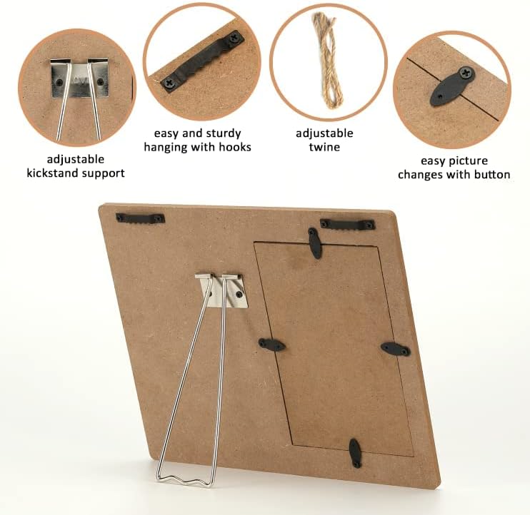 - Details: Easel and wall mount hooks attached to back for easy displaying.