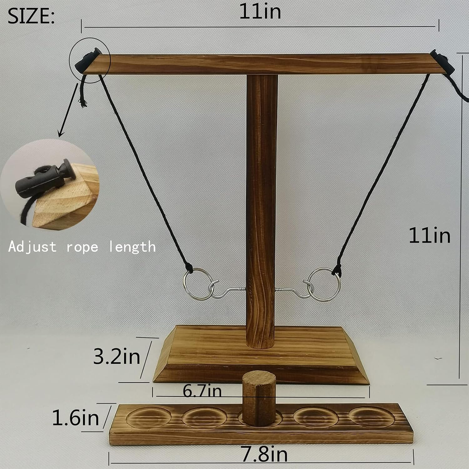 - 【Classic style】The chassis of this hook game is thicker, larger and more stable. 11" long and 11" high when assembled. And comes with a rope adjuster.There is an adjustment button is very convenient for you to adjust the length of the rope!