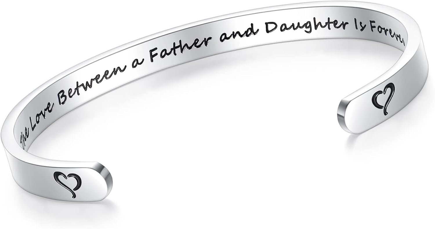 - Gifts for Daughters from Father : This cuff bracelet engraved with "The love between a father and daughter is forever." message inside. Make her smile with this concise and kind dad-daughter quote bracelet.