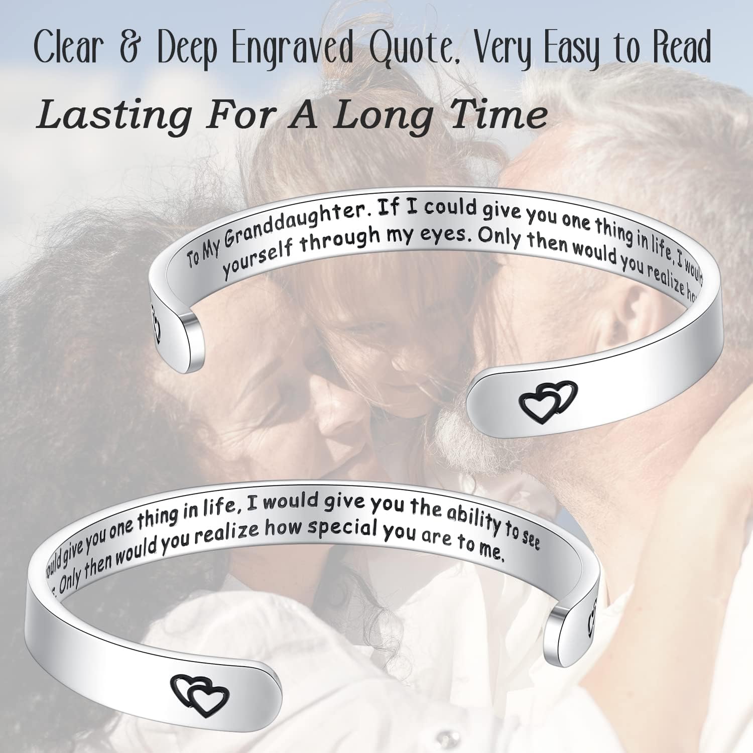 - Granddaughter Gifts from Grandma Grandpa : This cuff bracelet engraving with "To My Granddaughter - If I could give you one thing in life, I would give you the ability to see yourself through my eyes. Only then would you realize how special you are to me."