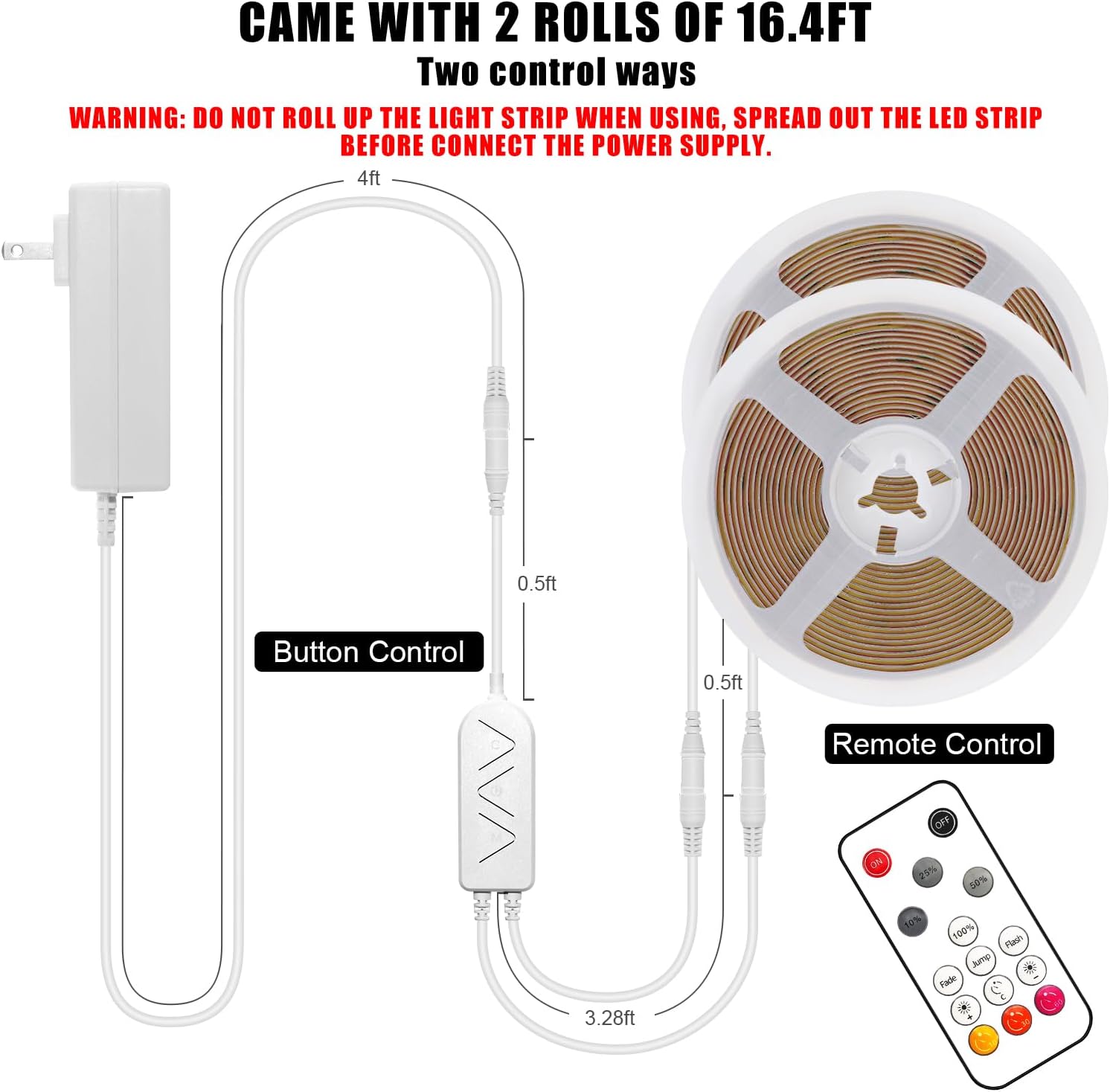 - Multiple Functions: Power on last setting, adjust brightness, timer setting, scenes options, 2 Rolls of 16.4ft