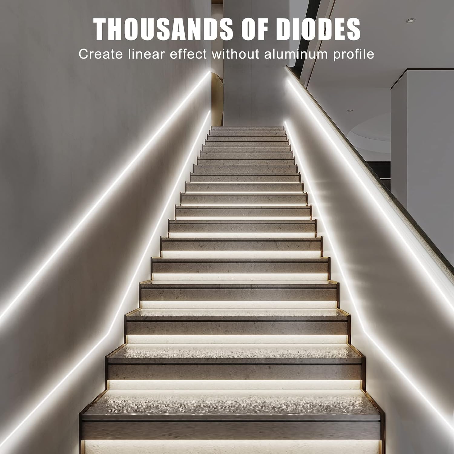 - Create Linear Effect:3840 pcs diodes/2*16.4ft, no more light dark areas, not reflected off the dark tile or polished counter, great for cosplay effects and model makers