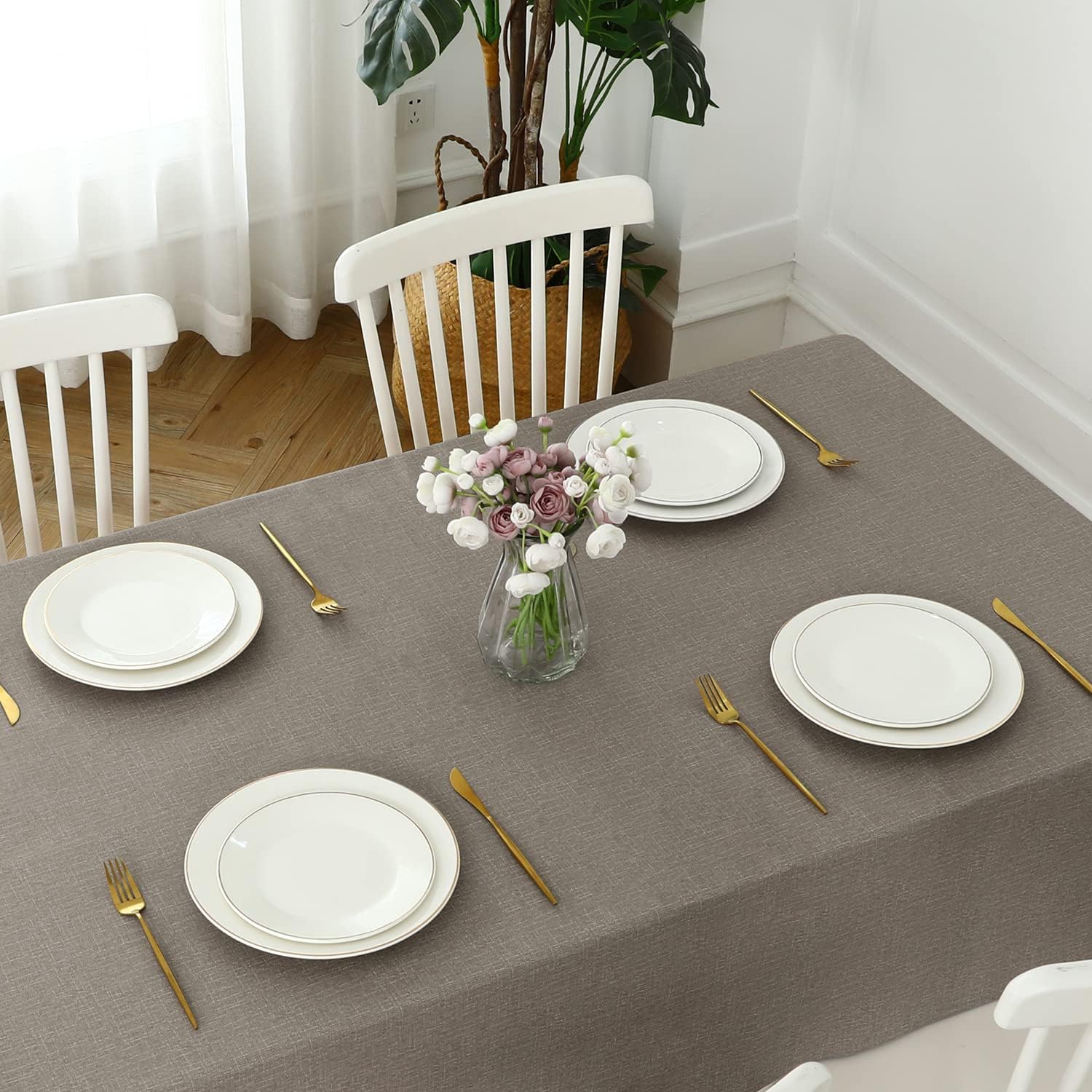 - SUITABLE DECOR FOR VERSATILE OCCASIONS - The faux linen plastic table cloth can match up with a variety of tableware. It is suitable for kitchen & dining tables, holiday events, cafes, parties, buffets, fiesta, BBQ, camping, picnic and other functional and decorative uses.