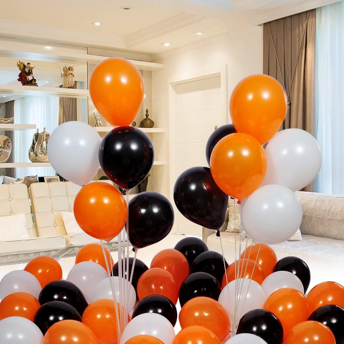 - Orange Black White Balloons Bulk: 100 Pcs white 100 Pcs black 100 Pcs orange 5 inch balloons is enough to meet your DIY balloons party decorations needs.