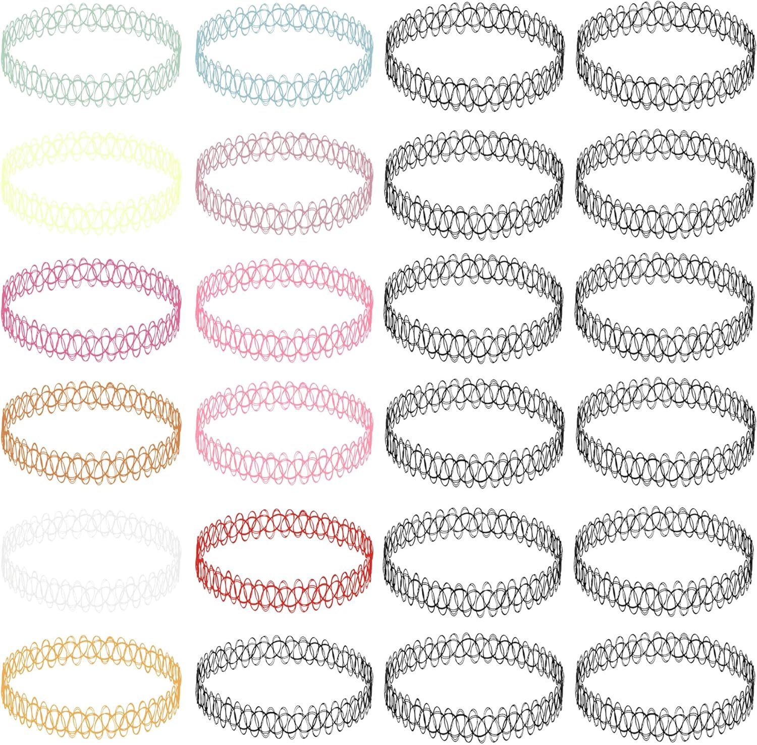 BodyJ4You 24PC Tattoo Choker Necklace - 90s Choker Necklaces Y2K Fashion Trendy Vintage - Daisy Flower Charm Colorful Rainbow Black Goth Pendant - Stretchy Elastic Necklace Summer Gift Set
