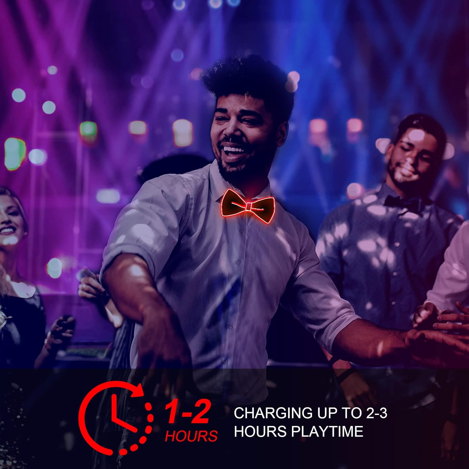 - ๐ฅใ3 MODESใThis LED Bow Tie has three lighting modes: long light, fast flash, slow flash. Three lighting modes can be controlled with one button to meet your various needs. Excellent lighting effects, make you stand out from the crowd.