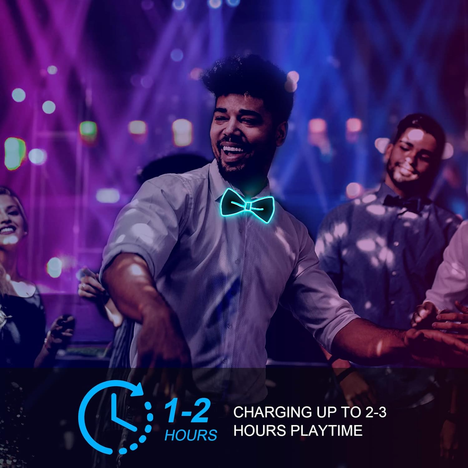 - ๐ใGOOD PERFORMANCEใThe LED light-emitting bowtie has good performance and can continue to emit light for a long time. The light will not be dazzling, there is no visual impairment, and it is comfortable to wear. And the light emitted is still visible under other lights, and the effect is excellent.