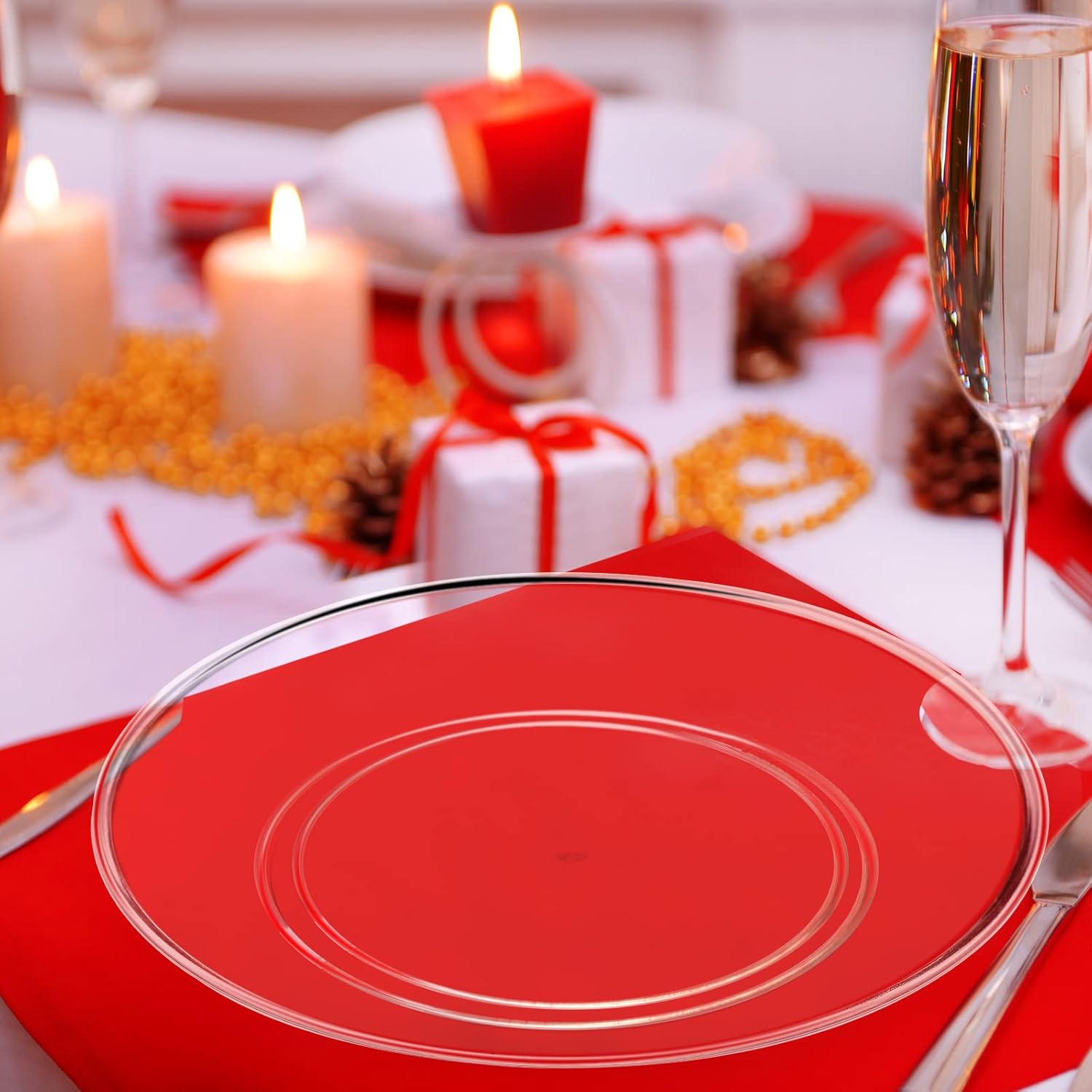 - Clear and Elegant Design: the clear plates for wedding reception are clear, simple but elegant, add a stylish touch to your party; They have smooth lines and edges, without burrs, avoiding scratching your hands; And they are stackable that you can store them easily to save storage space
