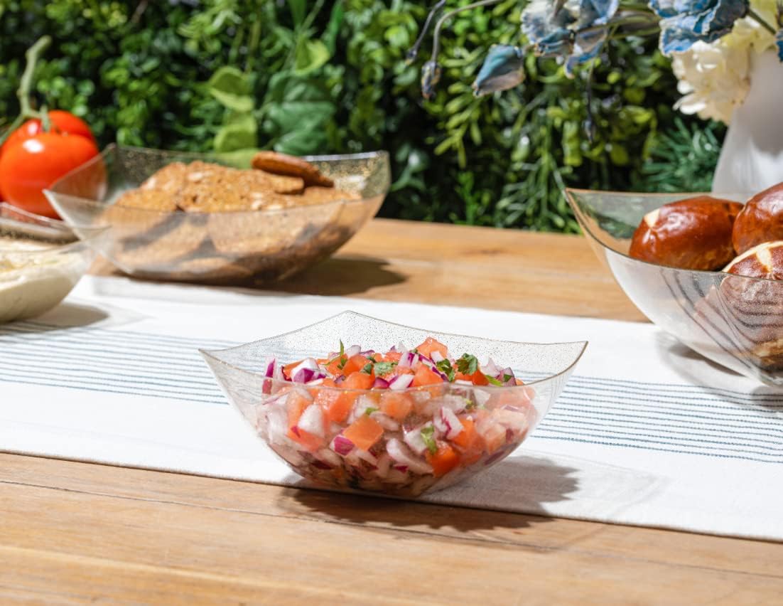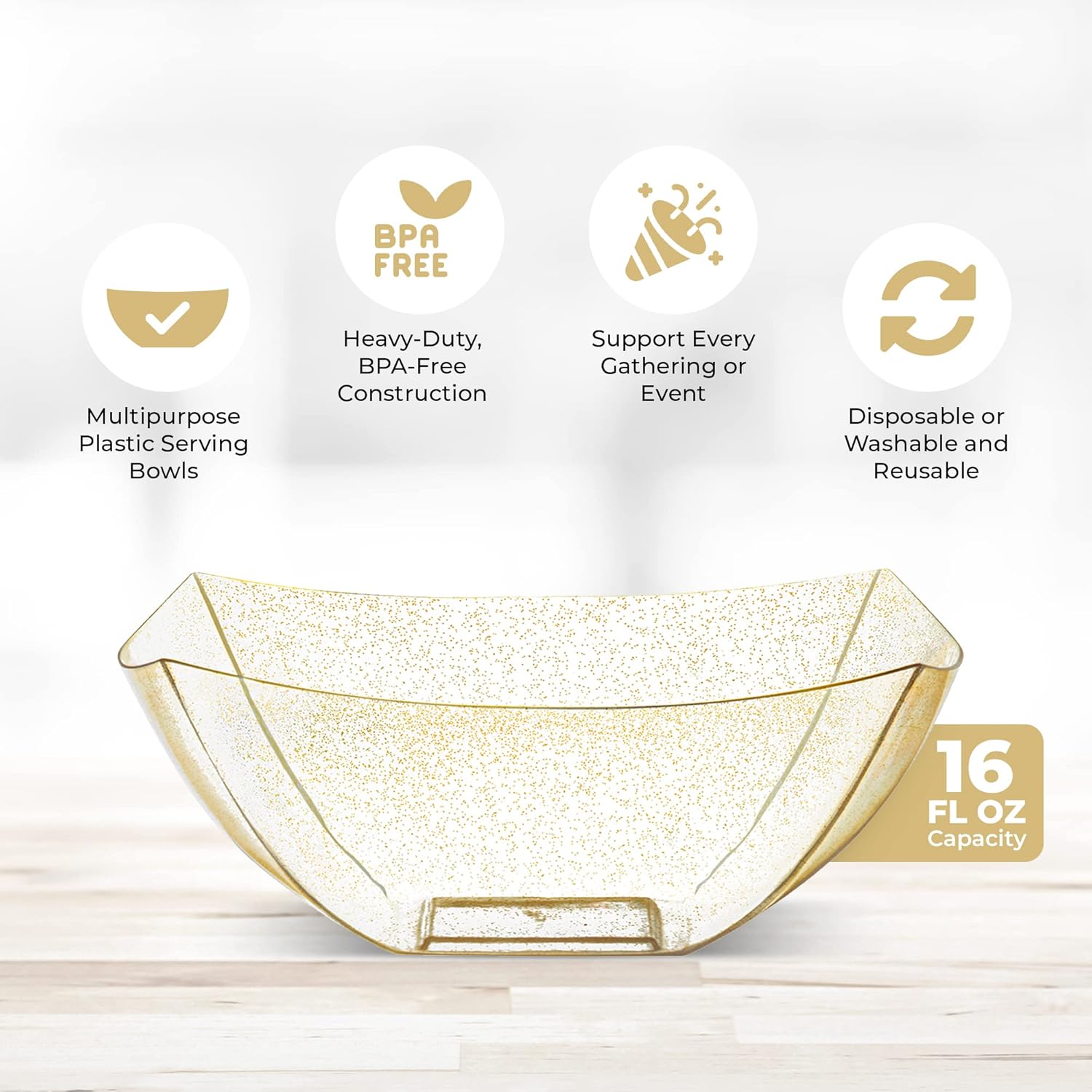 - MULTIPURPOSE USE: These 16 oz Gold Glitter plastic serving bowls are great for any occasion. Whether you're hosting a salad bar, serving snacks, candies, chips, or even using them for arts and crafts, these thanksgiving serving bowls meets all your needs. Enhance your party setup with these practical and stylish bowls that fit seamlessly into any event. Use them as candy dishes, chip bowls for parties, Gold Glitter plastic bowls, taco bar serving set for a party, and party bowls.