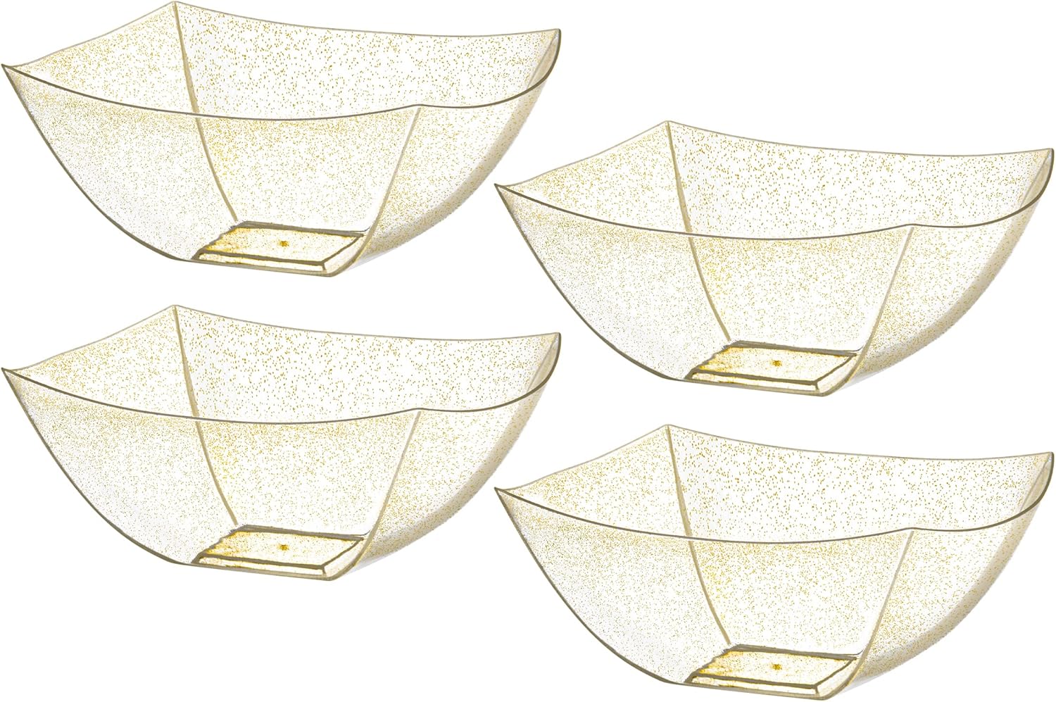 Posh Setting - Gold Glitter Plastic Serving Bowls for Party (16oz - 4 Pack) Square, Disposable, Candy Containers for Candy Buffet
