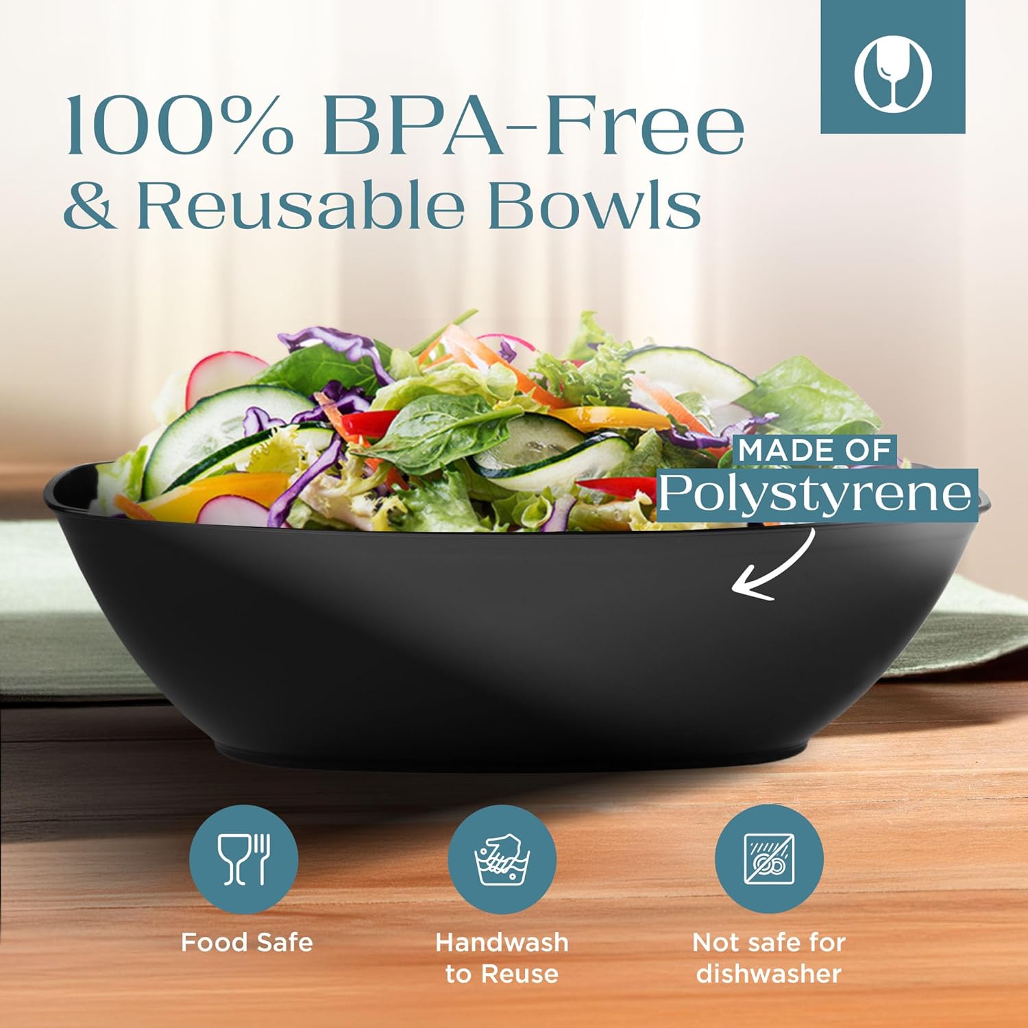 - DISPOSABLE OR WASHABLE AND REUSABLE – These plastic serving bowls offer quick convenience or sustainability, as they are 100% recyclable and can be hand washed for reuse. Ideal for catering bowls, black serving bowls for parties, party bowls for chips, black plastic serving bowls, and party serving bowls.